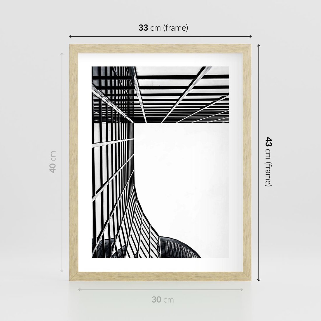 Plakat w ramie 30x40 - Minimalizm Wysokości - architektura, czarno białe zdjęcie - rama drewno