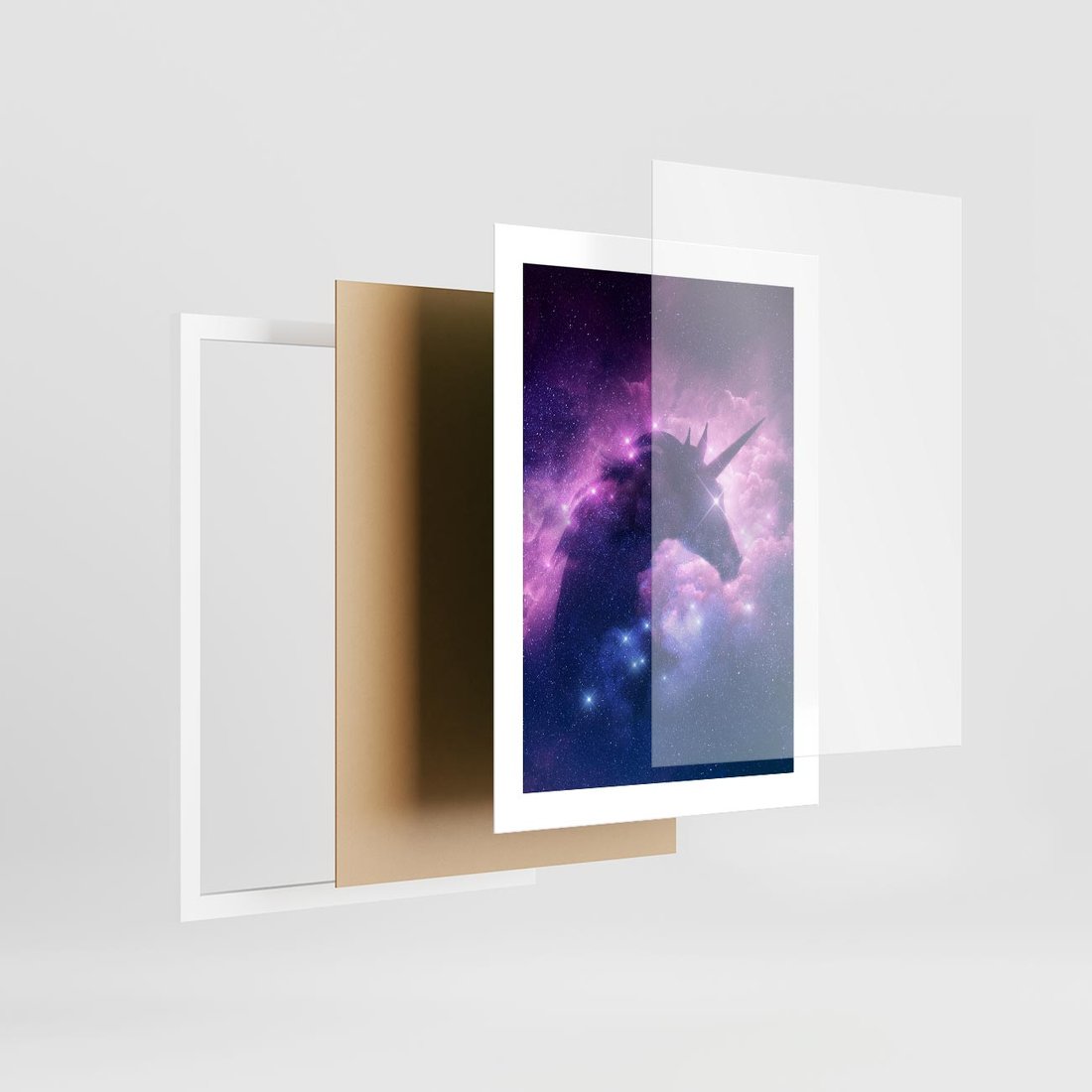 Przenieś się w nieodkryte rejony kosmosu w towarzystwie jednorożca na obrazie. Odczuj magię i tajemniczość tego stworzenia, przenikając w świat fantazji i wyobraźni.