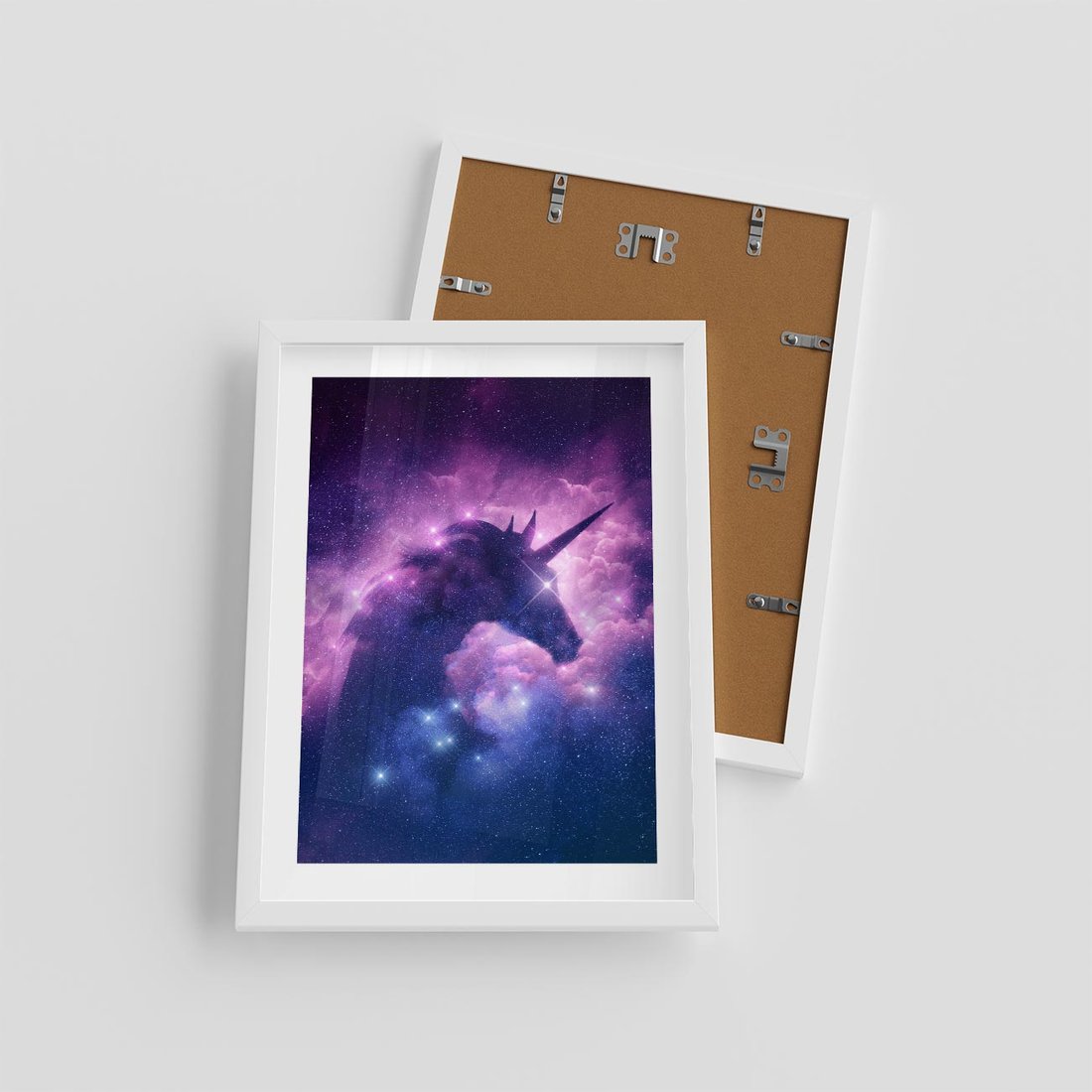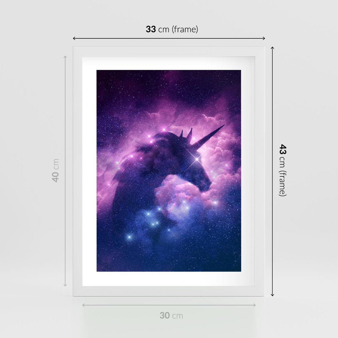 Plakat w ramie 30x40 - Mityczna podróż - kosmos, jednorożec - rama biała