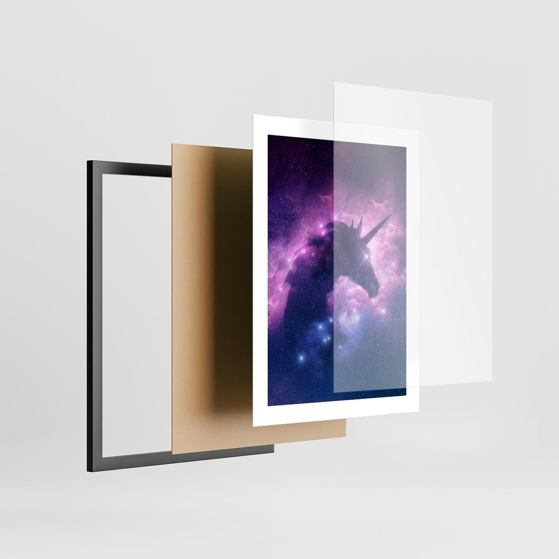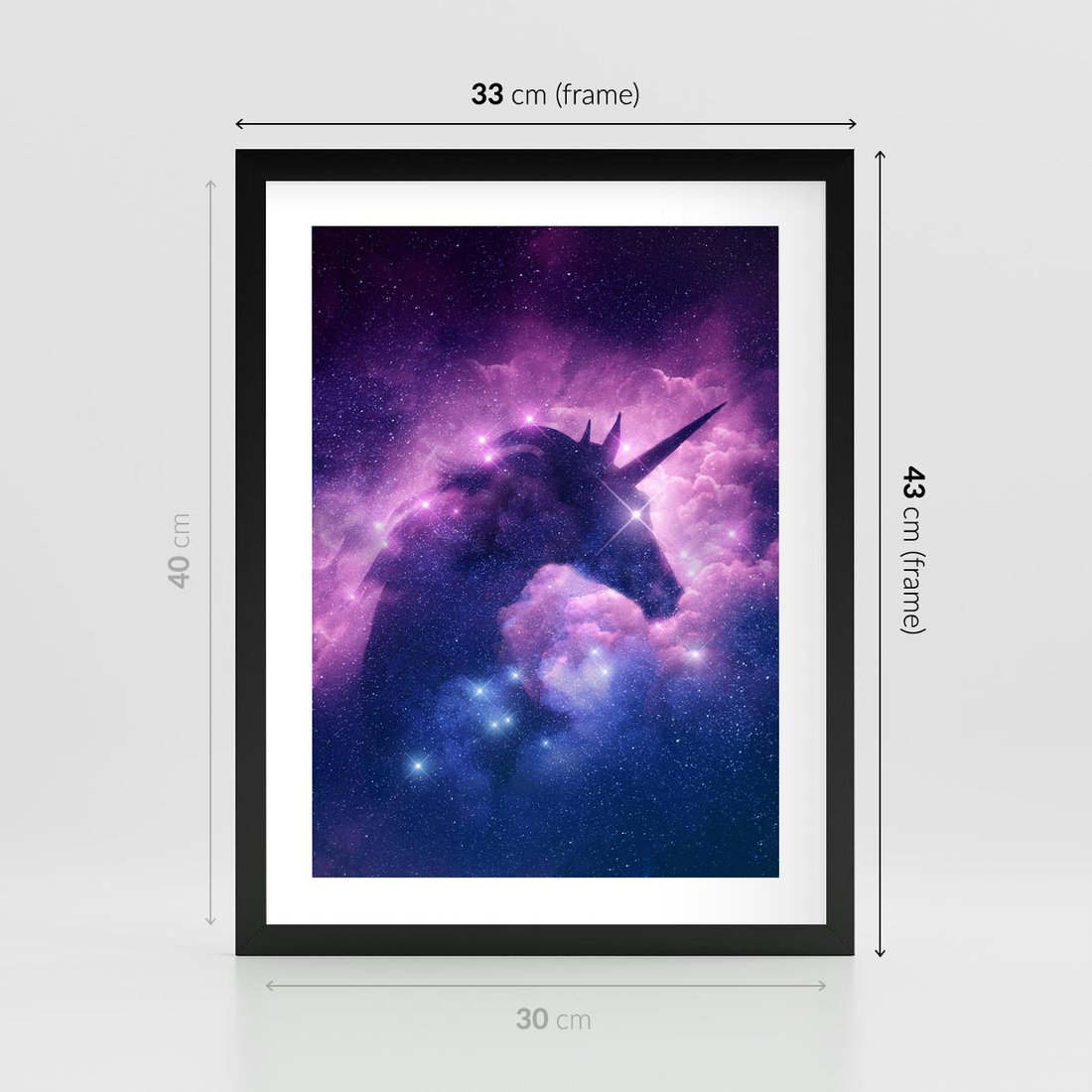 Plakat w ramie 30x40 - Mityczna podróż - kosmos, jednorożec - rama czarna