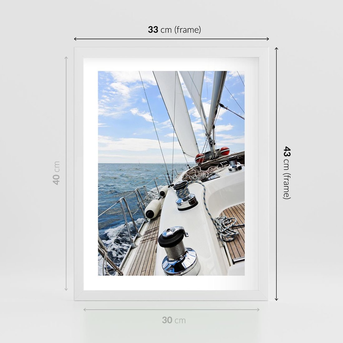 Plakat w ramie 30x40 - Moc żaglowca na pełnym morzu - żaglowiec, jacht - rama biała