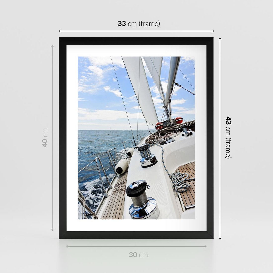 Plakat w ramie 30x40 - Moc żaglowca na pełnym morzu - żaglowiec, jacht - rama czarna