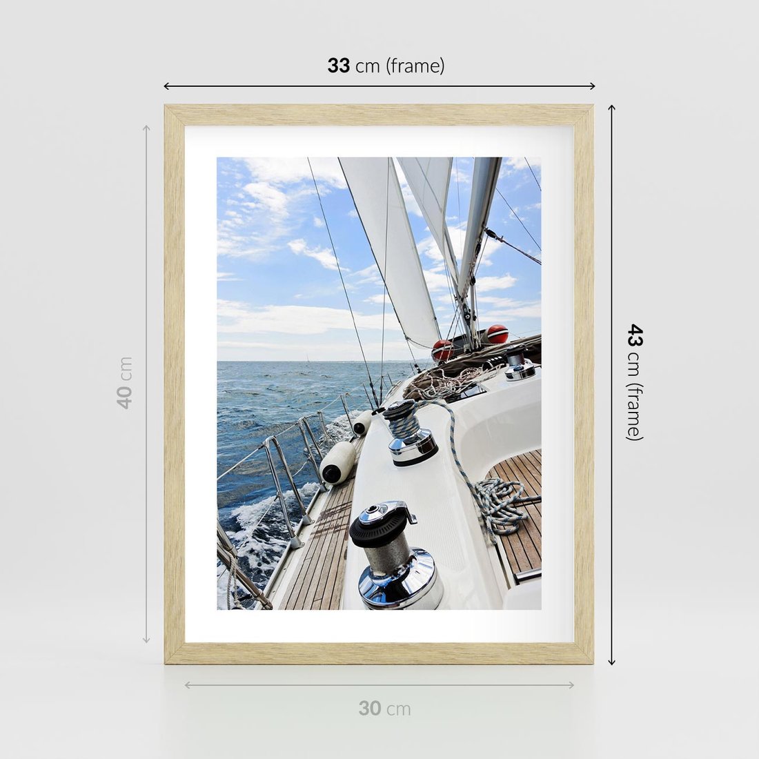 Plakat w ramie 30x40 - Moc żaglowca na pełnym morzu - żaglowiec, jacht - rama drewno