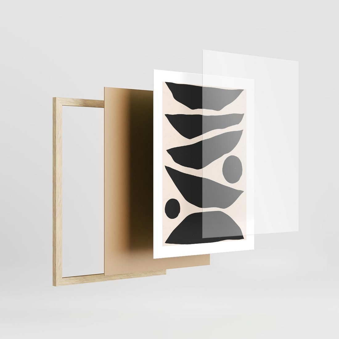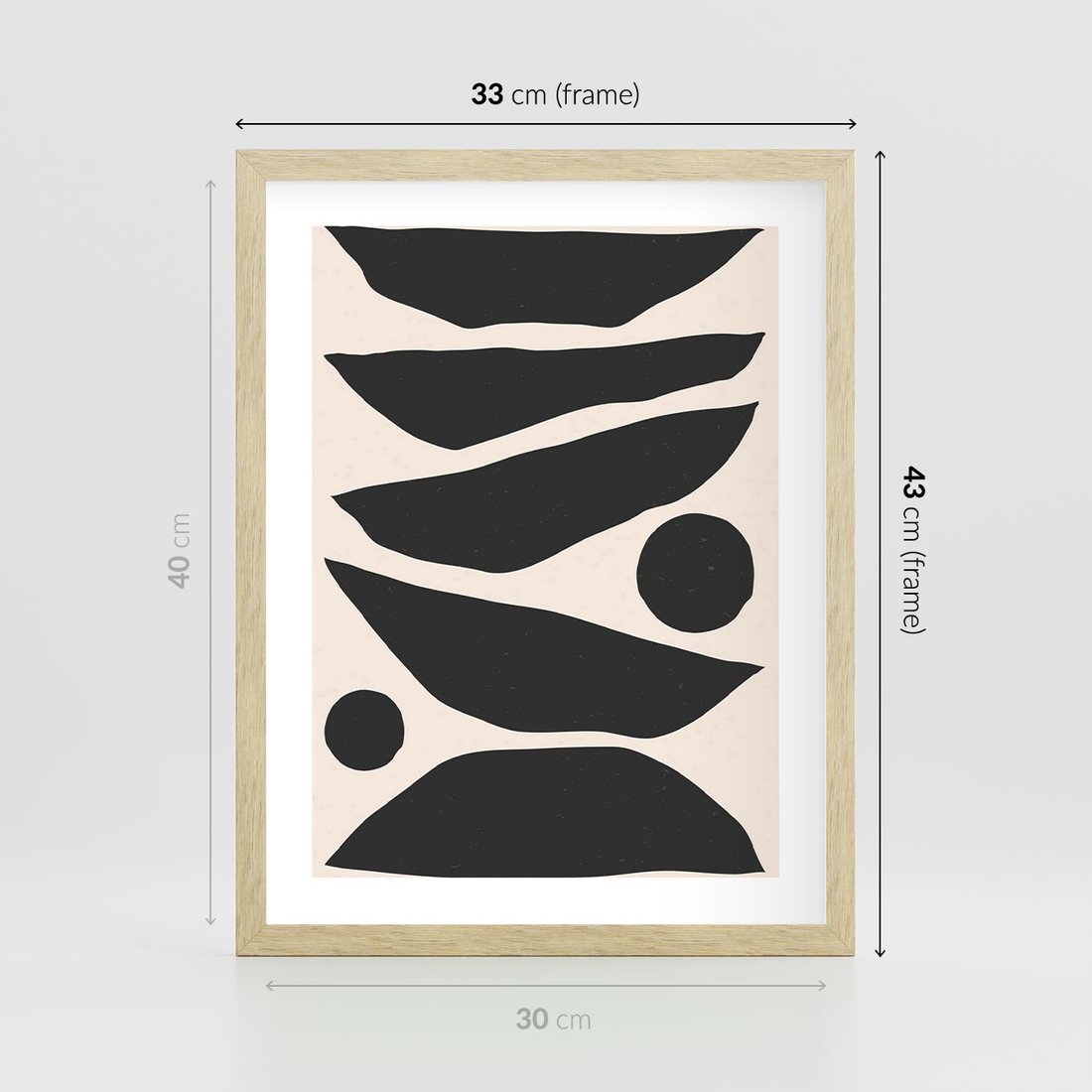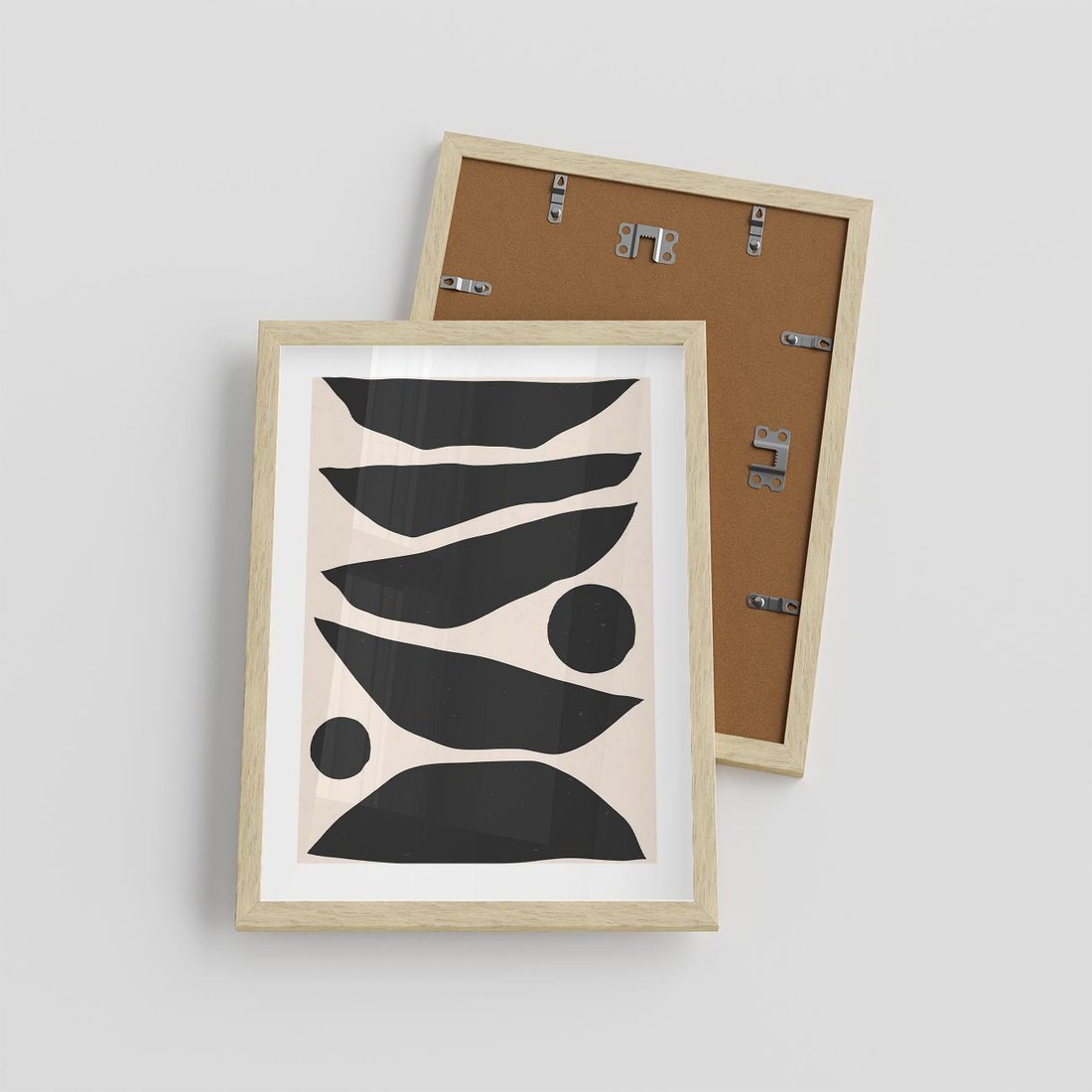 Plakat w ramie 30x40 - Modernistyczna Abstrakcja w Czerni i Bieli - abstrakcja, czarno biała grafika - rama drewno