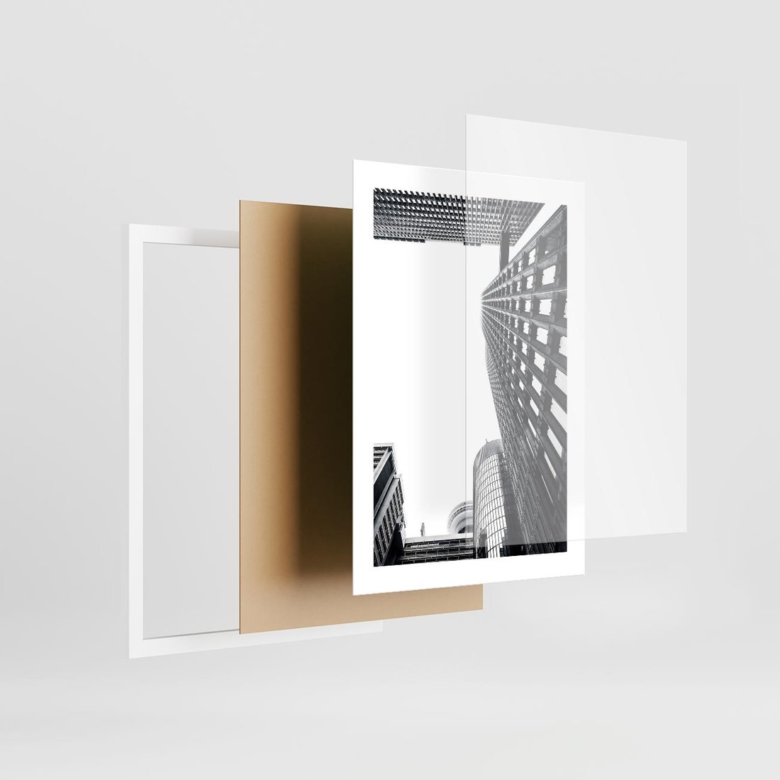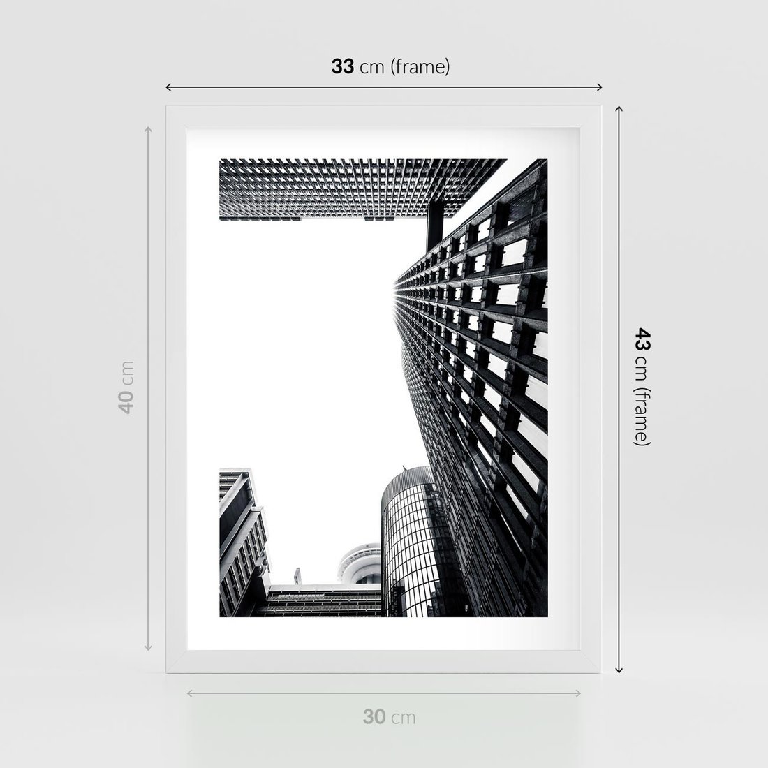 Plakat w ramie 30x40 - Monochromatyczna Sceneria Wieżowców - architektura, wieżowce - rama biała