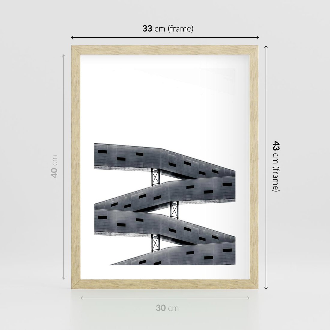 Plakat w ramie 30x40 - Monochromatyczna Sztuka Nowoczesnych Budynków - architektura, nowoczesne formy - rama drewno