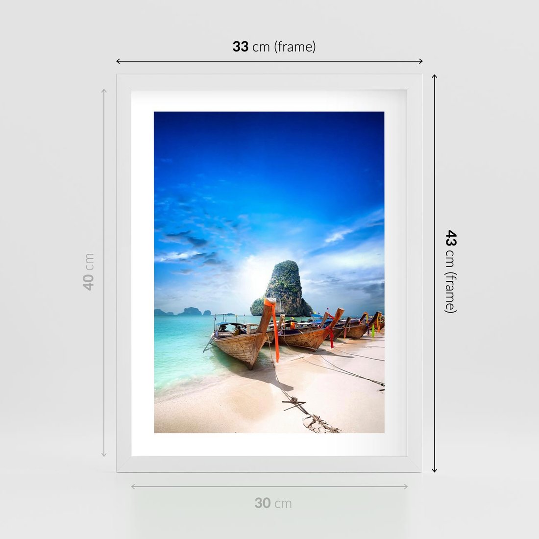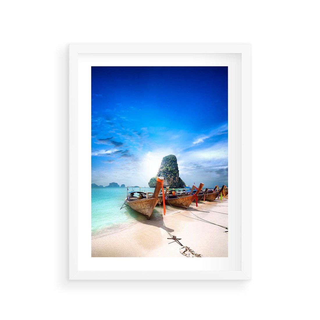 Plakat w ramie 30x40 - Morze na Łodzi - morze, łódź - rama biała