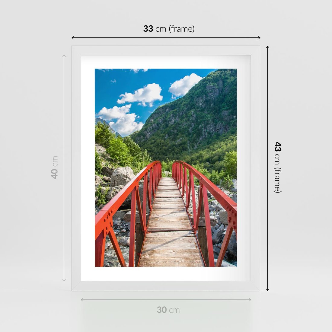 Plakat w ramie 30x40 - Most do przygody - góry, most - rama biała