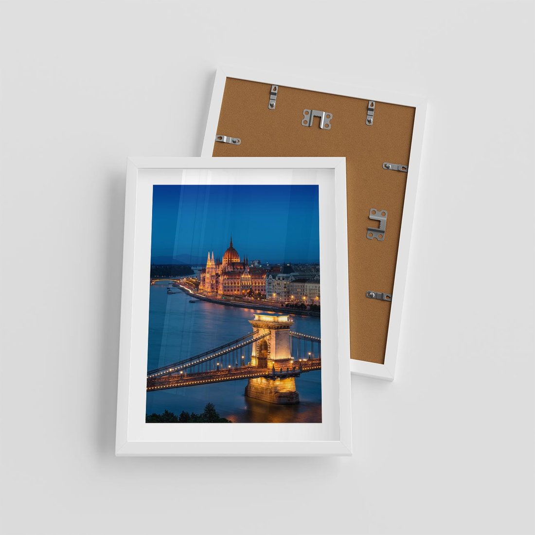 Plakat w ramie 30x40 - Mostowe miasto nocą - miasto, most - rama biała