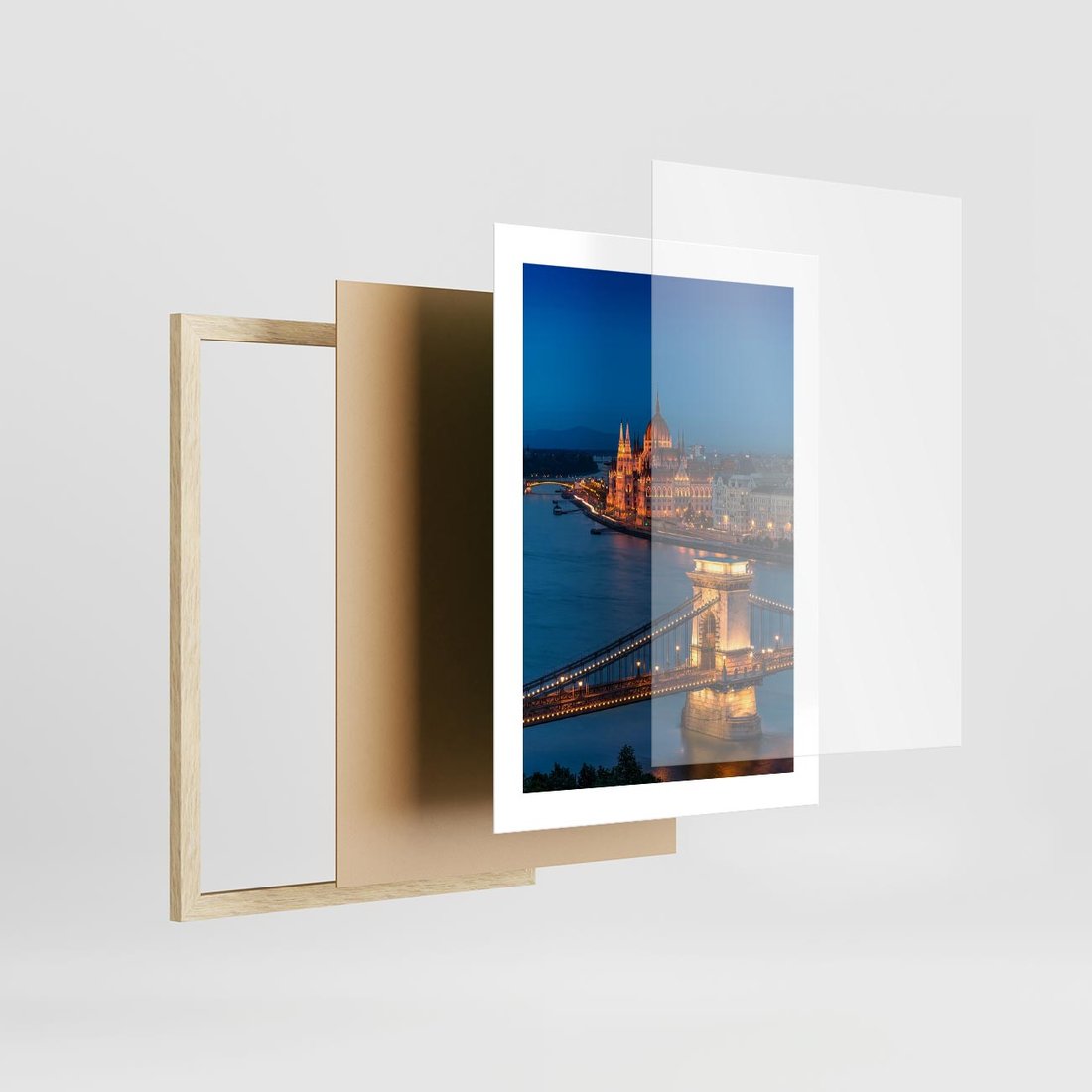 Plakat w ramie 30x40 - Mostowe miasto nocą - miasto, most - rama drewno