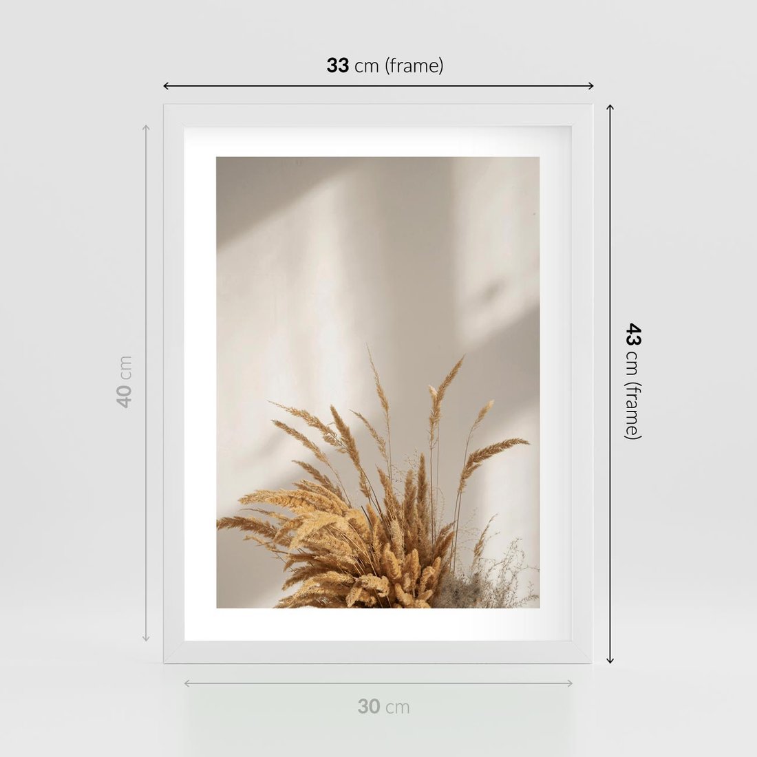 Plakat w ramie 30x40 - mpresyjne układy traw - boho, trawy - rama biała