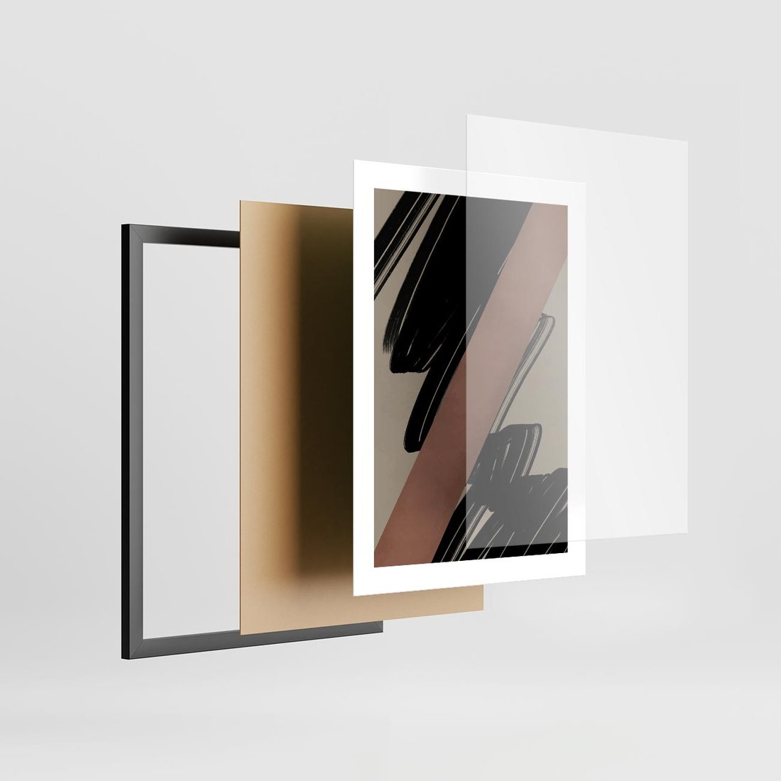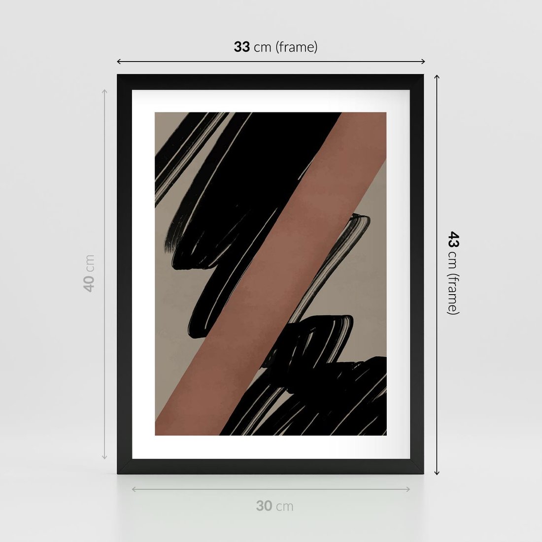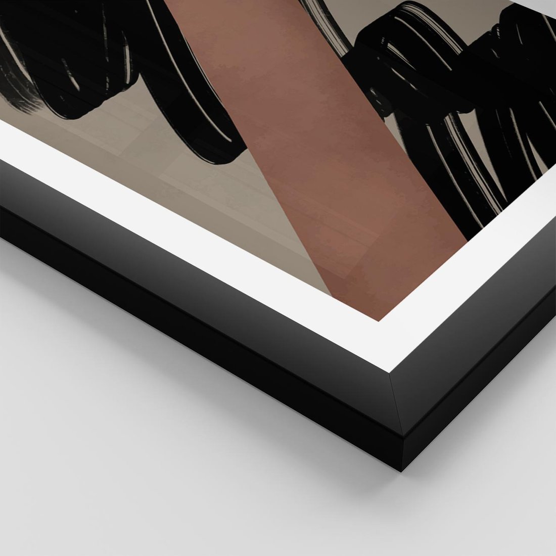 Abstrakcyjny plakat ukazuje czarne splatane linie, tworząc wrażenie niepokoju. Brązowy pas farby dodaje głębi kompozycji, tworząc nowoczesny obraz w stylu loft.