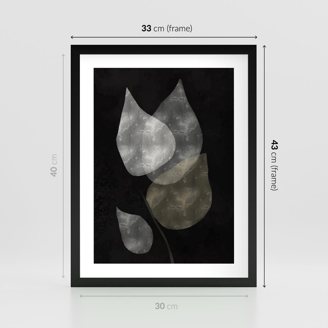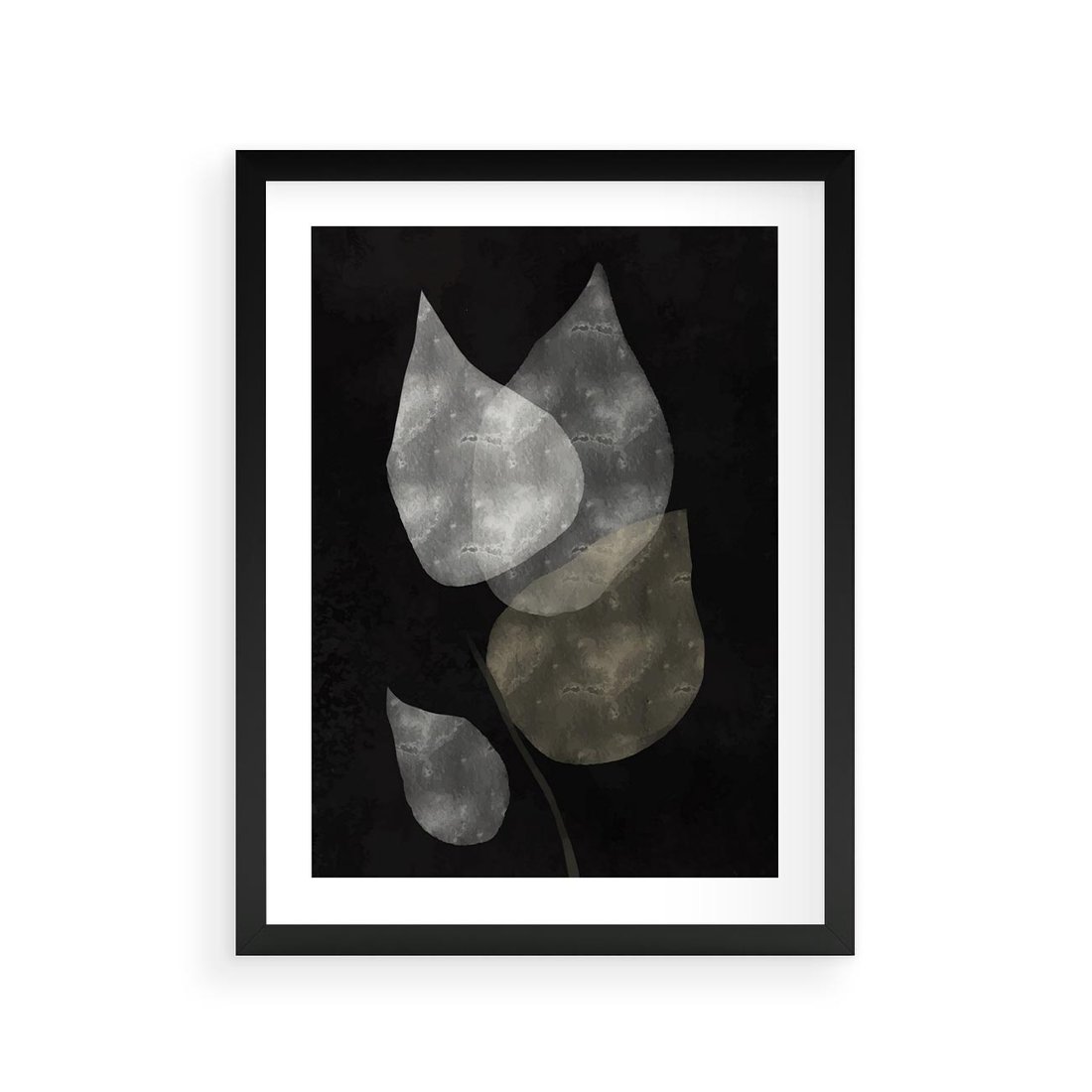 Plakat w ramie 30x40 - Mroczne Złudzenia - abstrakcyjne liście, mroczna atmosfera - rama czarna