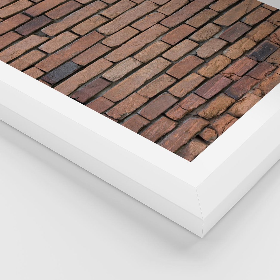 Plakat w ramie 30x40 - Mur cegieł: industrialny urok - cegły, mur - rama biała