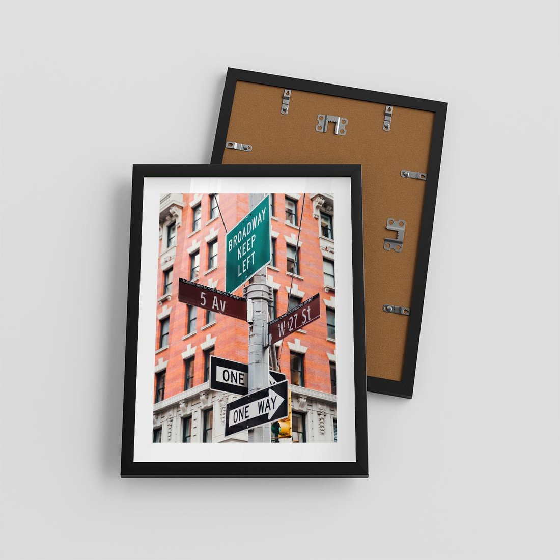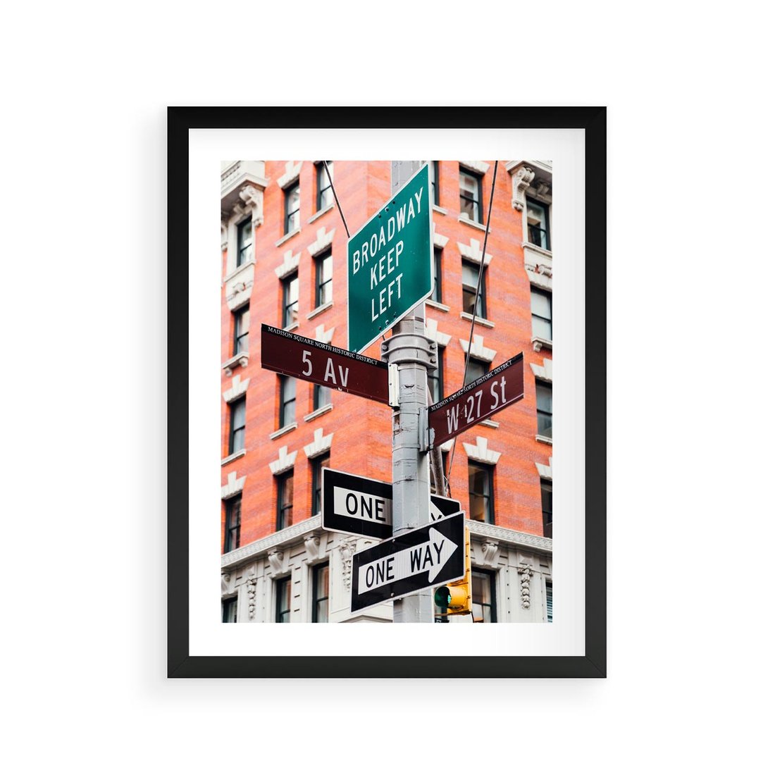 Plakat w ramie 30x40 - Namiastka wielkiego miasta - Nowy Jork, drogowskaz - rama czarna