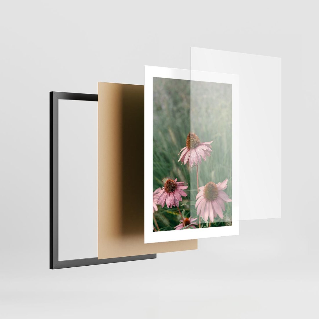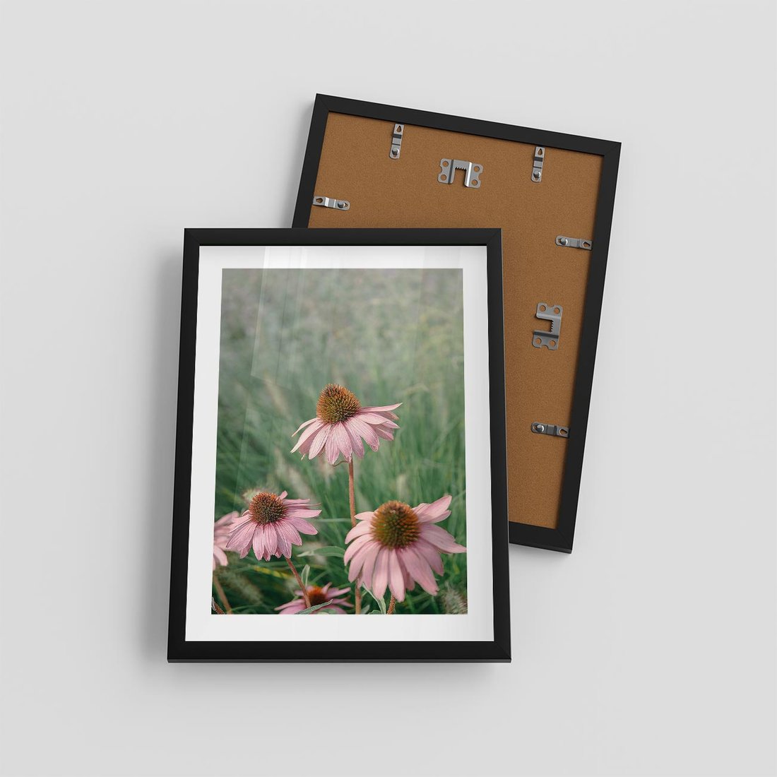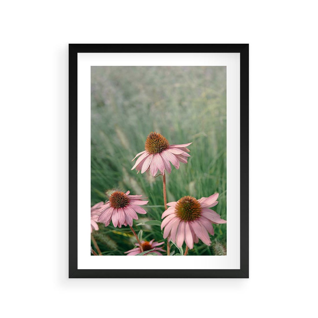 Plakat w ramie 30x40 - Natura w Pełnym Blasku - kwiaty na łące, różowe kwiaty polne - rama czarna
