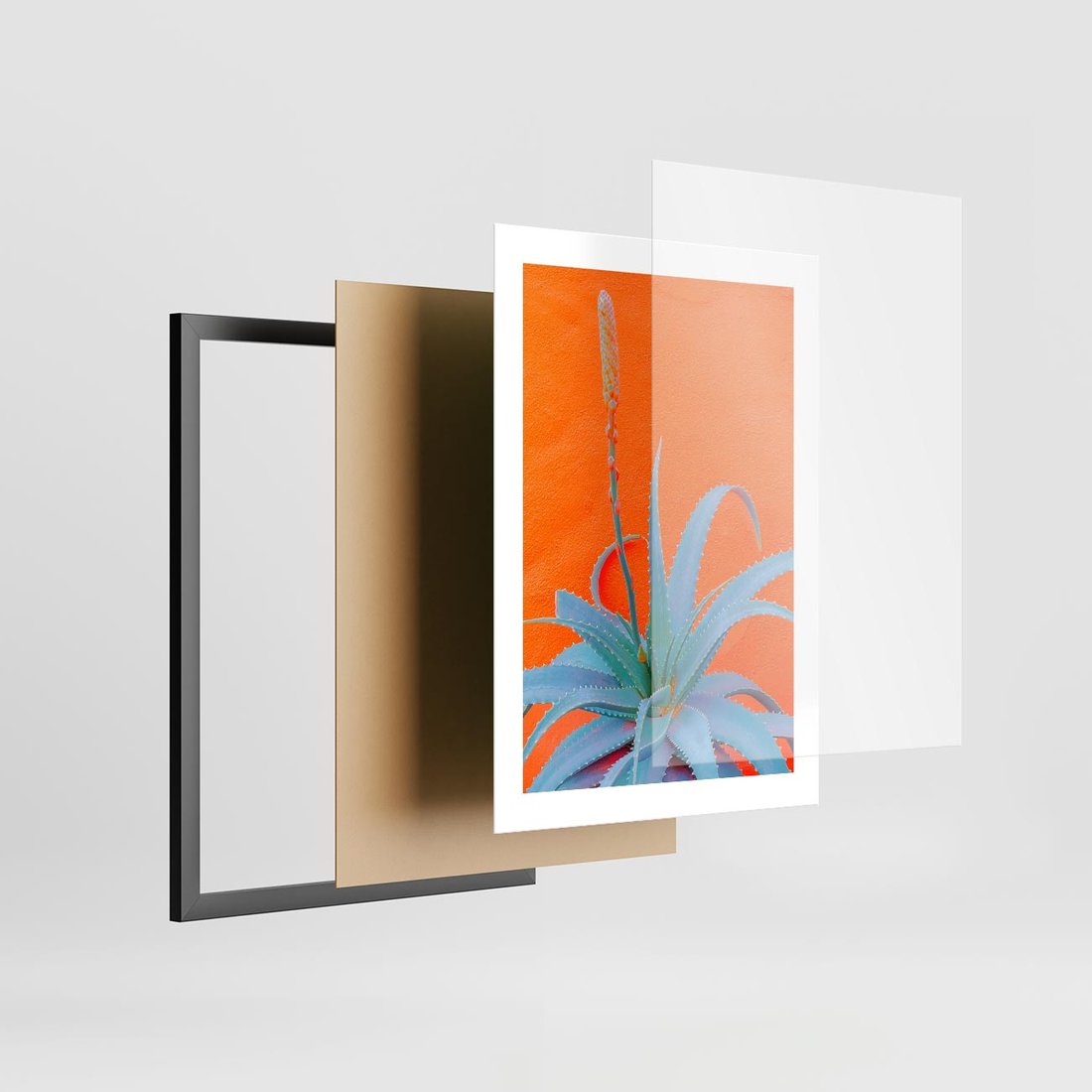 Plakat w ramie 30x40 - Naturalna Harmonia - kaktusy, liście - rama czarna
