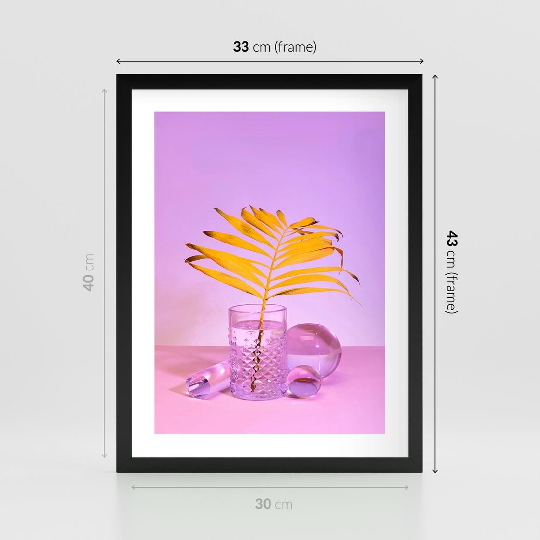 Plakat w ramie 30x40 - Neonowy Liść Palmy na Fotografii - neonowa fotografia, liść palmy w szklance - rama czarna