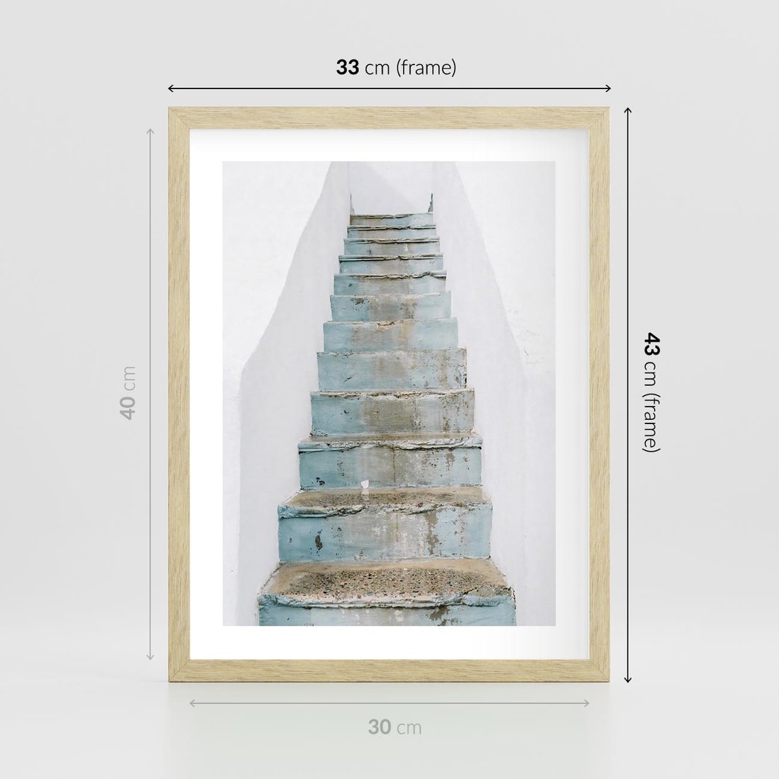 - Plakat w ramie 30x40 - Niebieskie Schody Santorini