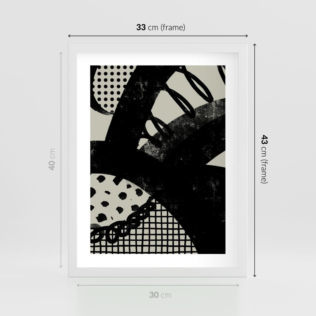 Plakat w ramie 30x40 - Nieznanie Zaskoczenia - bstrakcyjna mroczna kompozycja, nieregularne - rama biała
