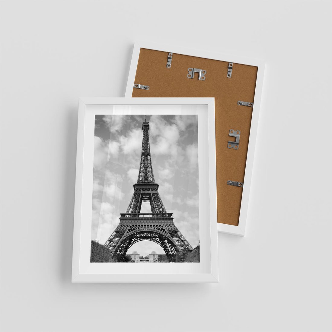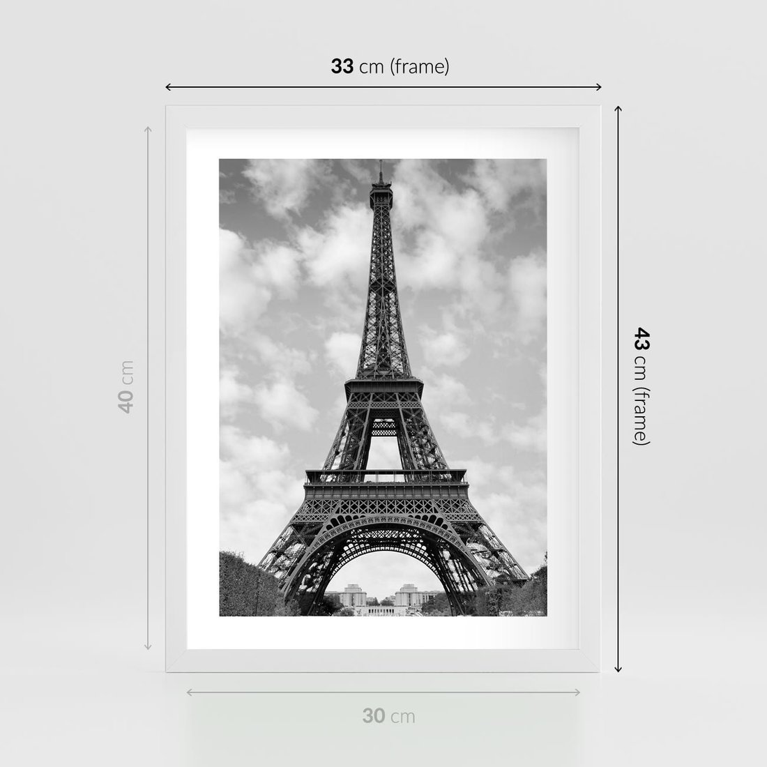 Plakat w ramie 30x40 - Nocna panorama Paryża z wieżą Eiffla - Eiffla, Paryż - rama biała
