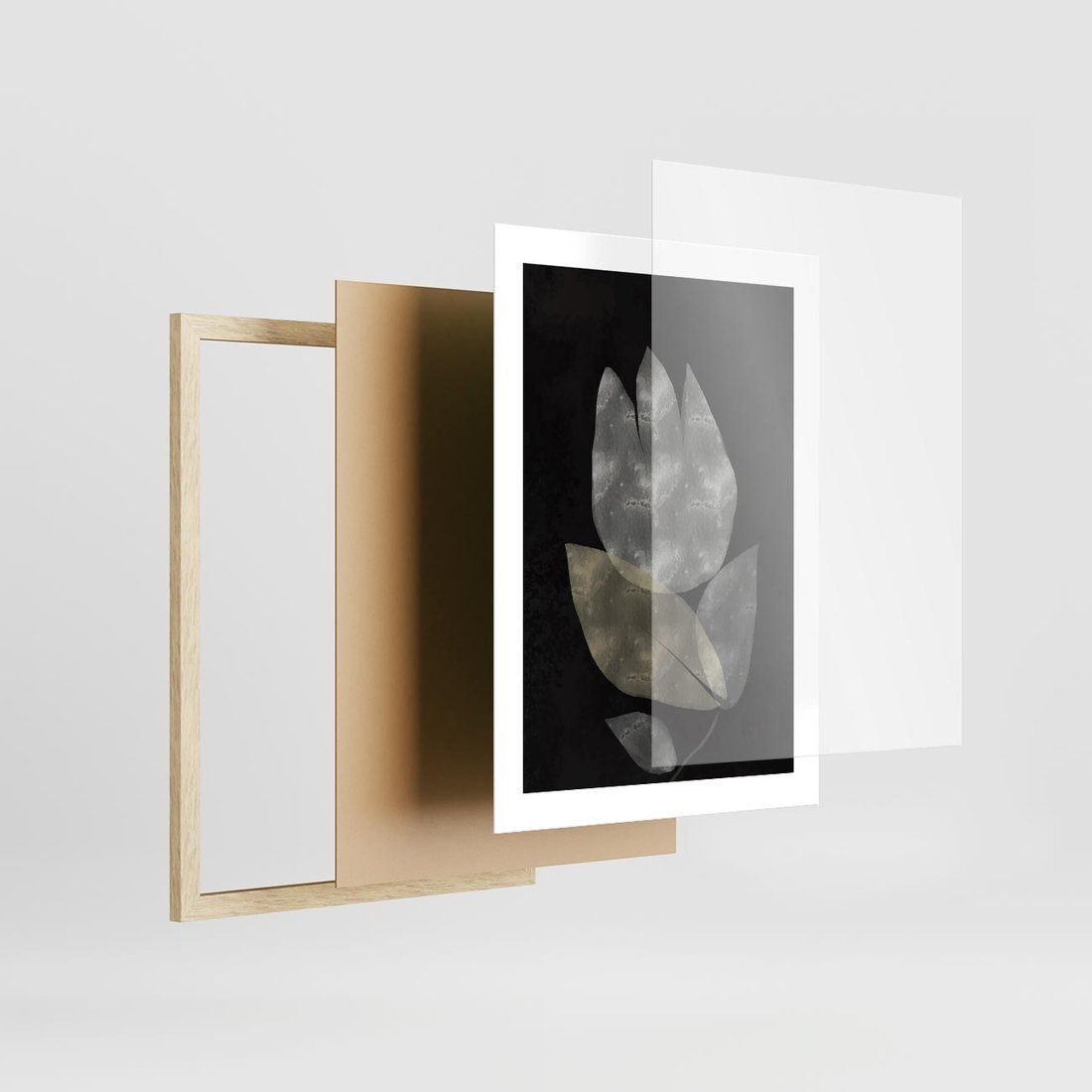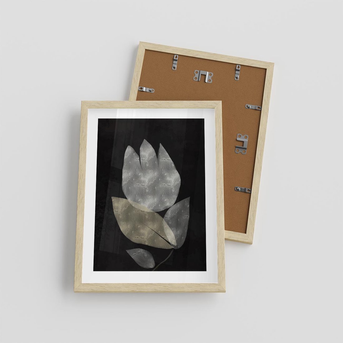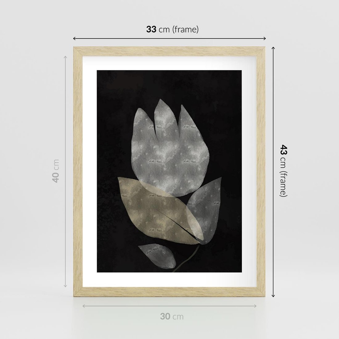 Plakat w ramie 30x40 - Nocne Uniesienia - abstrakcyjny kwiat, mroczna atmosfera - rama drewno