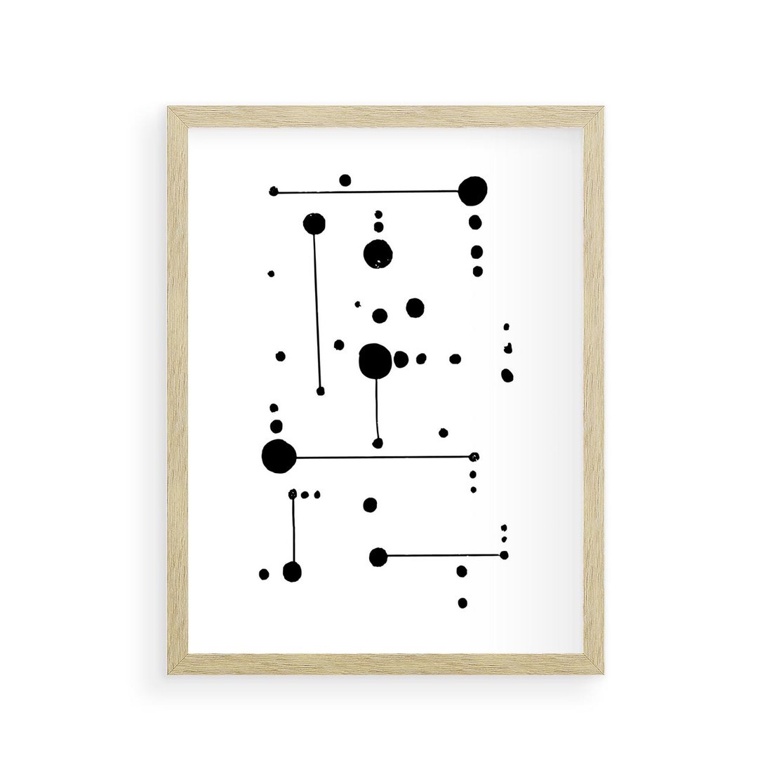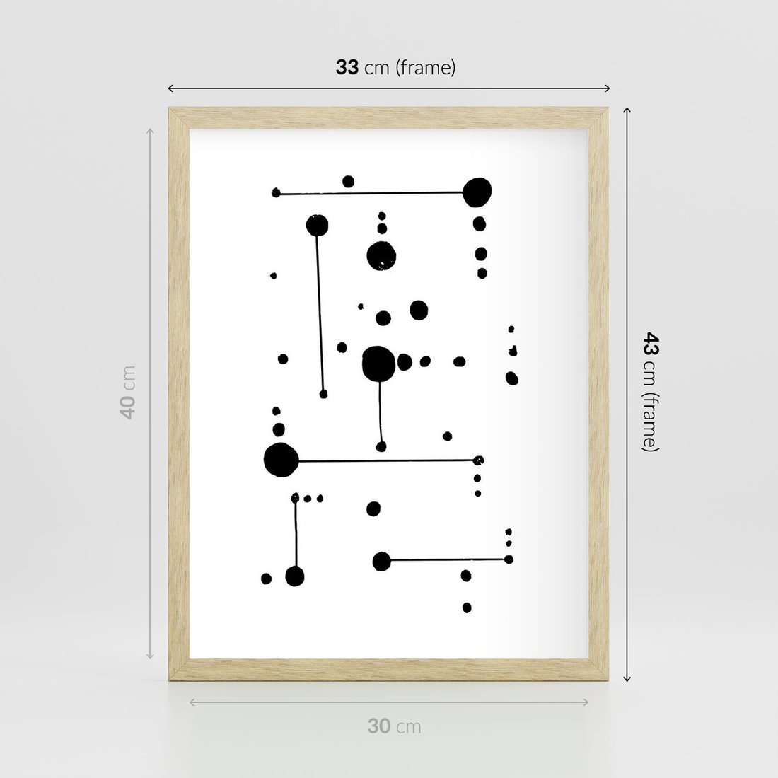 Plakat w ramie 30x40 - Nocne Zawirowania - abstrakcyjny plakat, czarne kropki i kreski - rama drewno