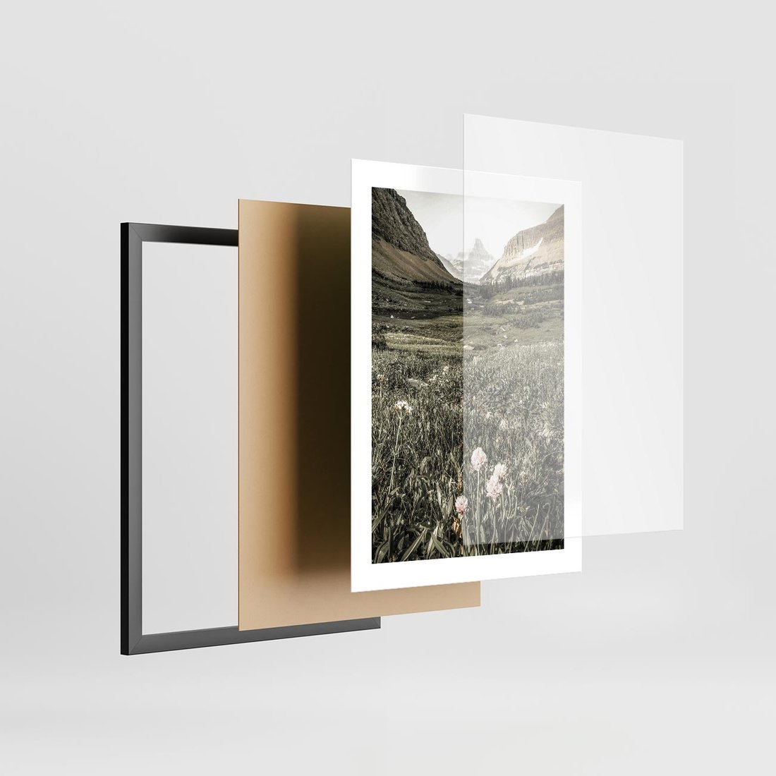 Plakat w ramie 30x40 - Nostalgiczne Góry - górski krajobraz, łaka w górach - rama czarna