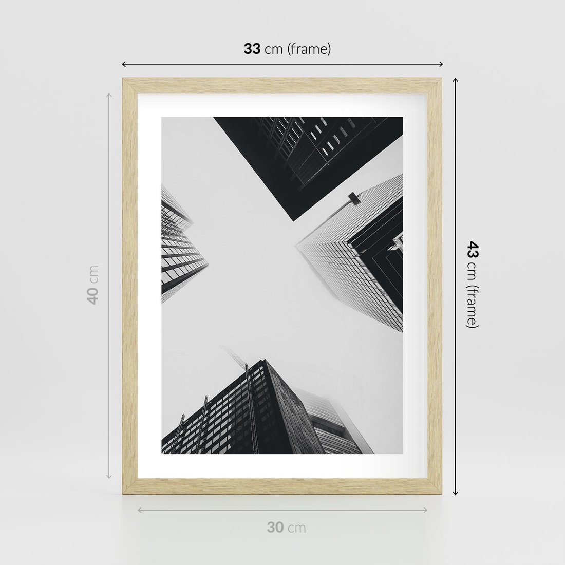 Plakat w ramie 30x40 - Nowoczesna Dynamika - perspektywa, wieżowce - rama drewno