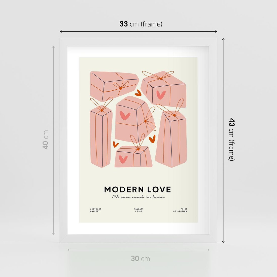 Plakat w ramie 30x40 - Nowoczesna Miłość - nowoczesna grafika, pastelowe kolory - rama biała