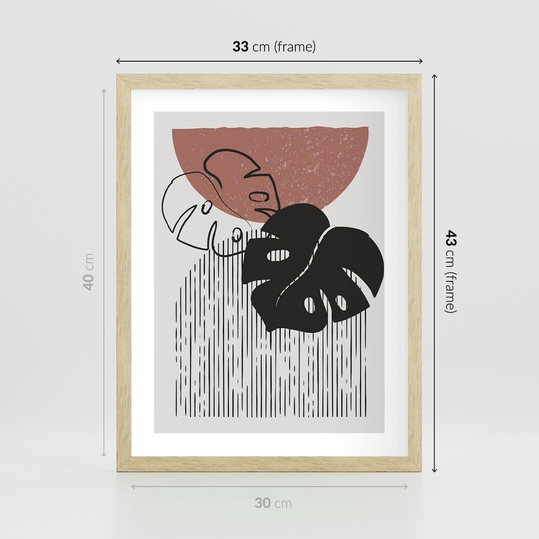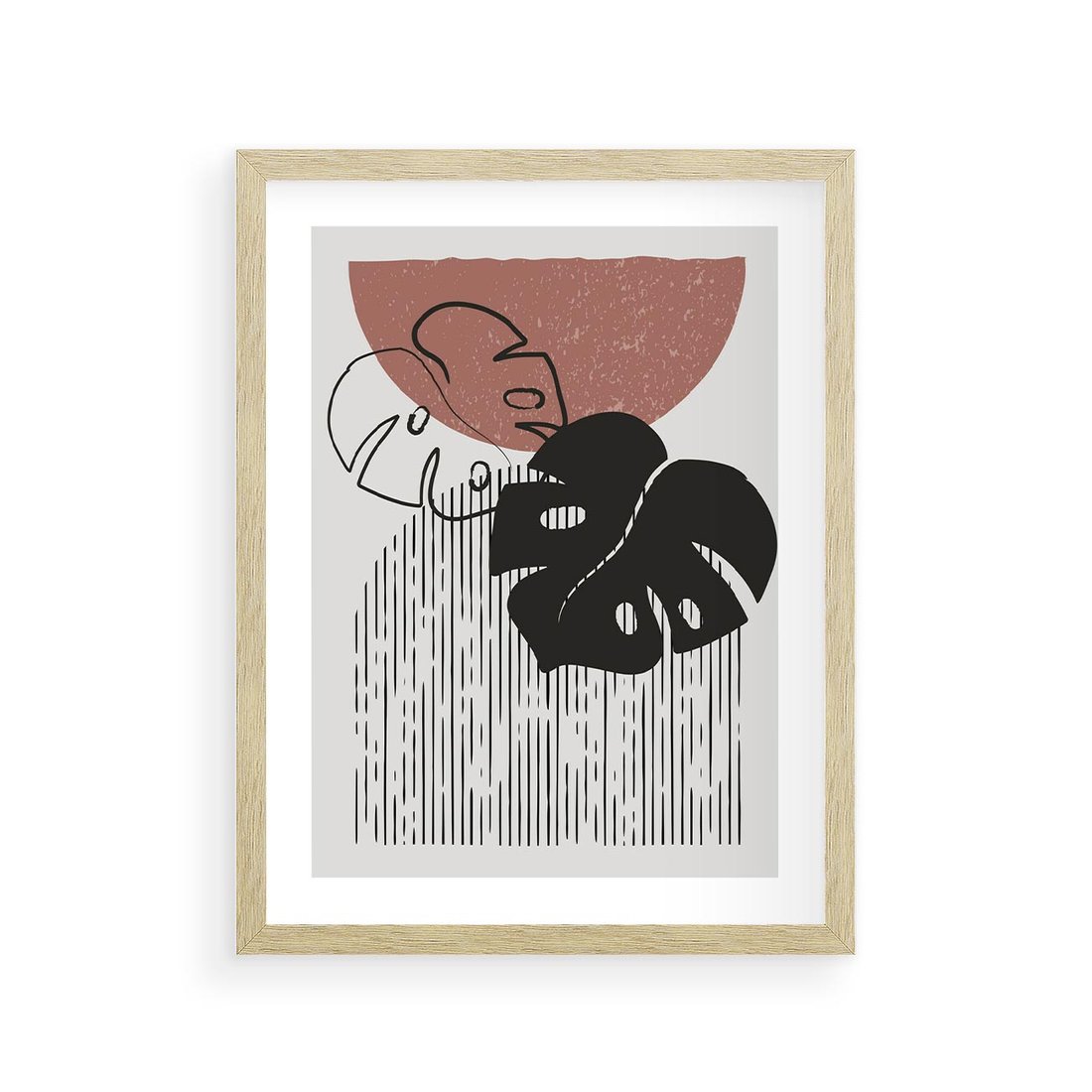 Plakat w ramie 30x40 - Nowoczesna Monstera: Szkic w Grafice - nowoczesna grafika, monstera - rama drewno
