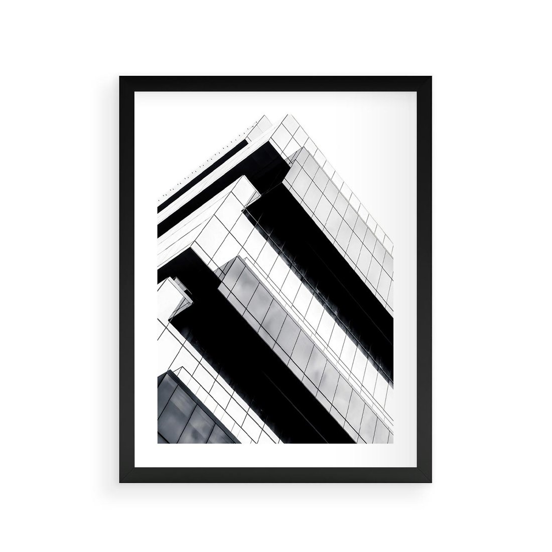 Plakat w ramie 30x40 - Nowoczesna Surowość: Wieżowiec na Czarno-Białej Grafice - architektura, wieżowiec - rama czarna