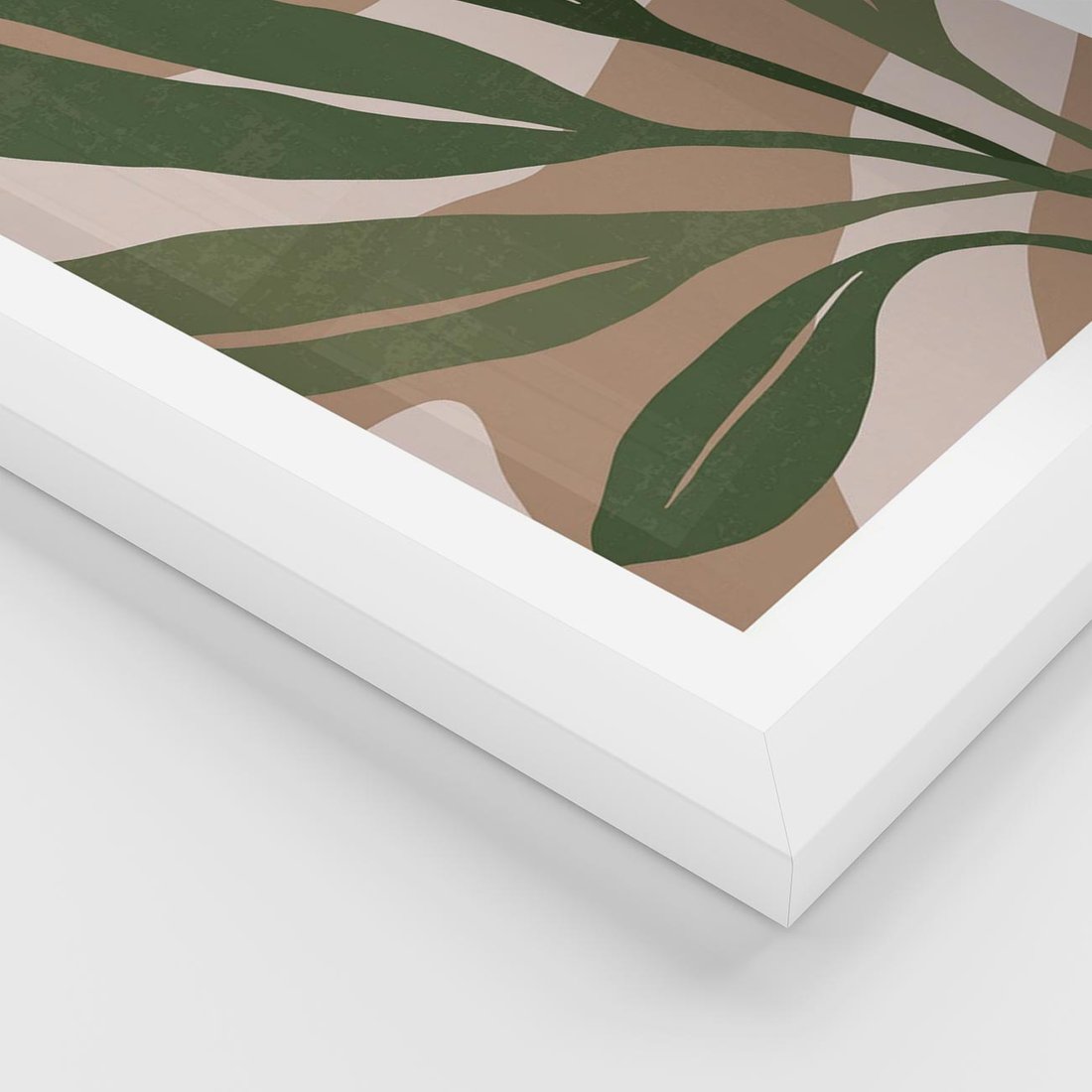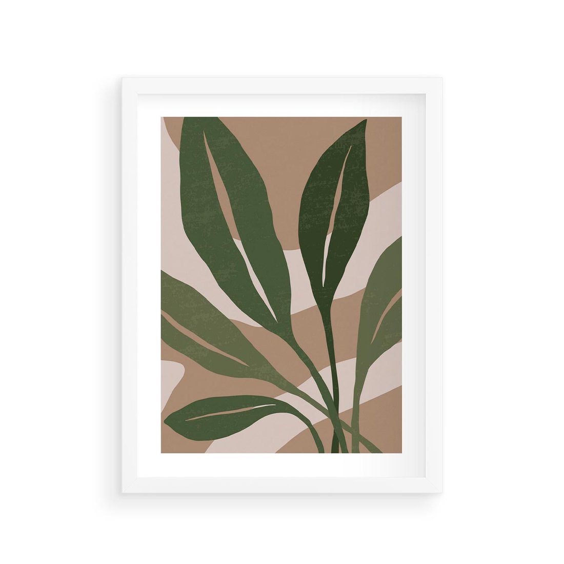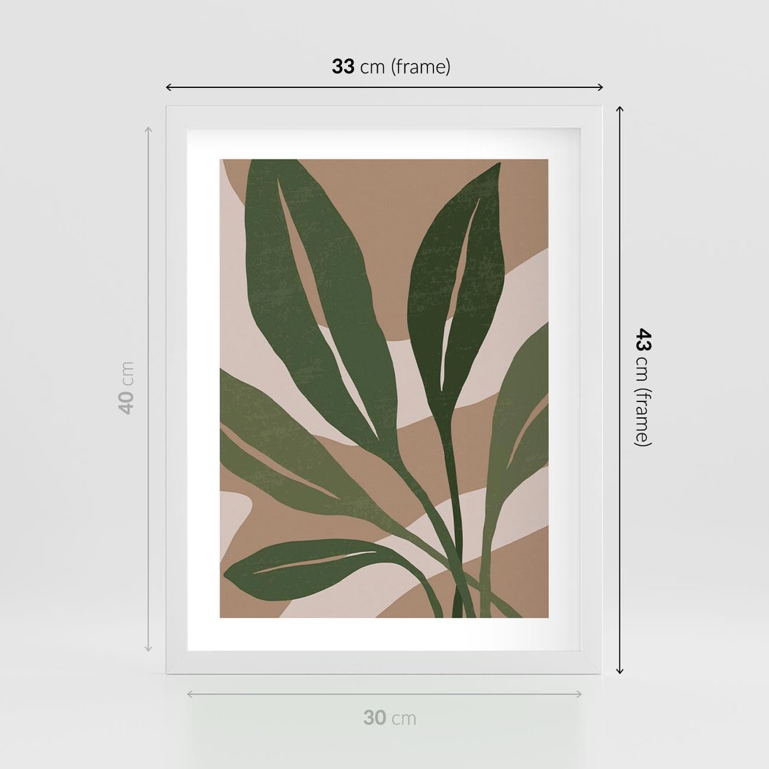 Plakat w ramie 30x40 - Nowoczesność Natury: Plakat z Zielonymi Liśćmi - nowoczesny plakat, beż - rama biała