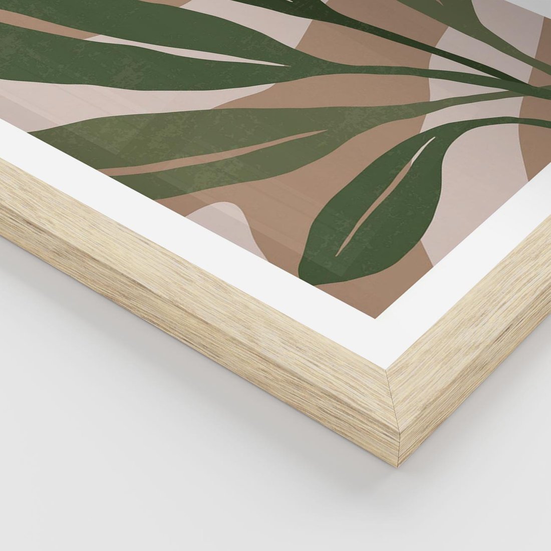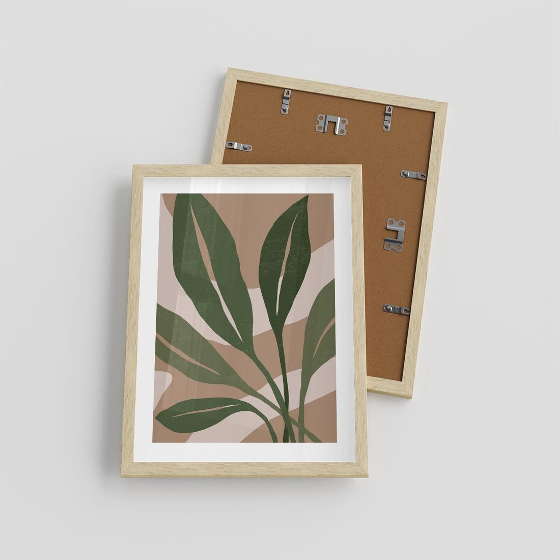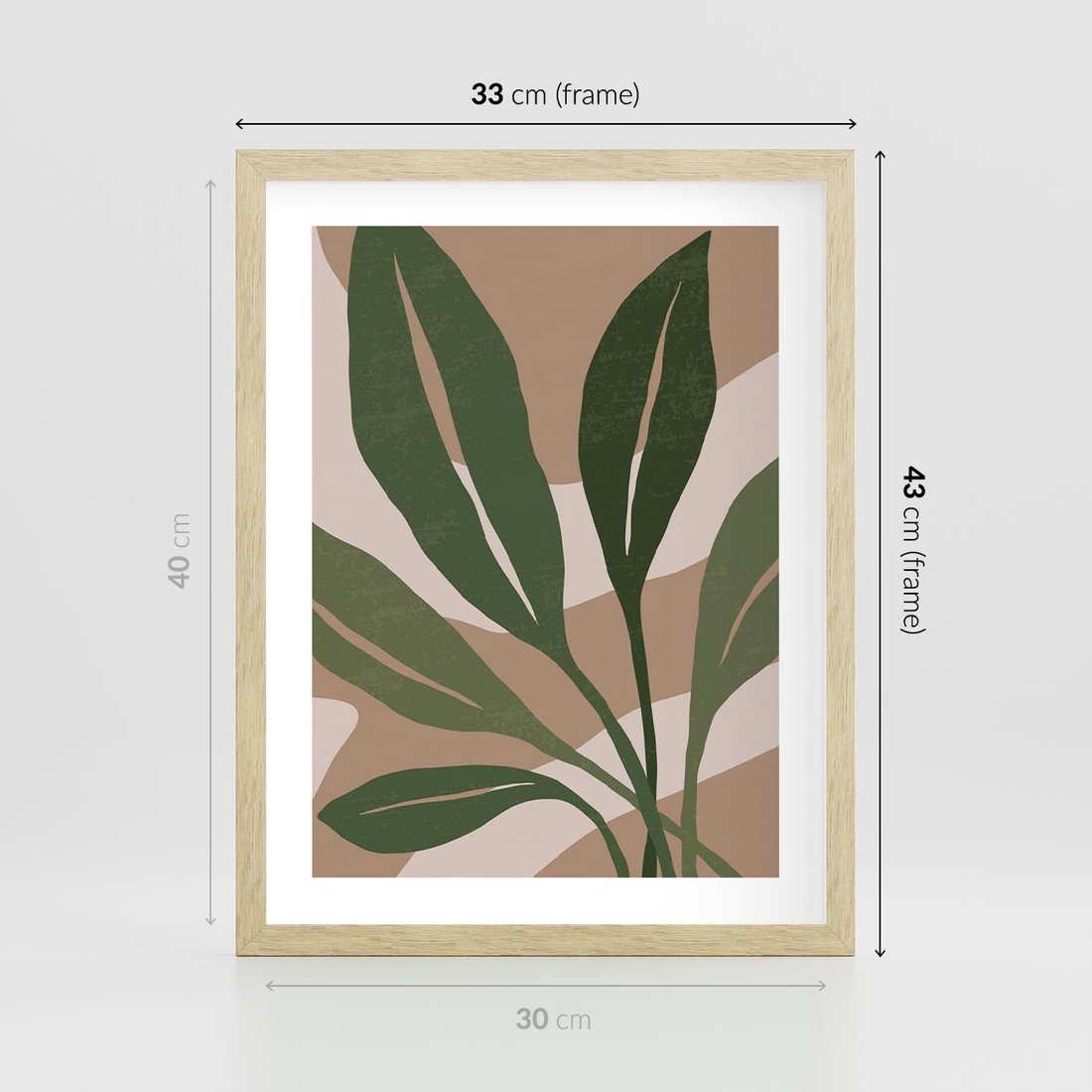 Plakat w ramie 30x40 - Nowoczesność Natury: Plakat z Zielonymi Liśćmi - nowoczesny plakat, beż - rama drewno