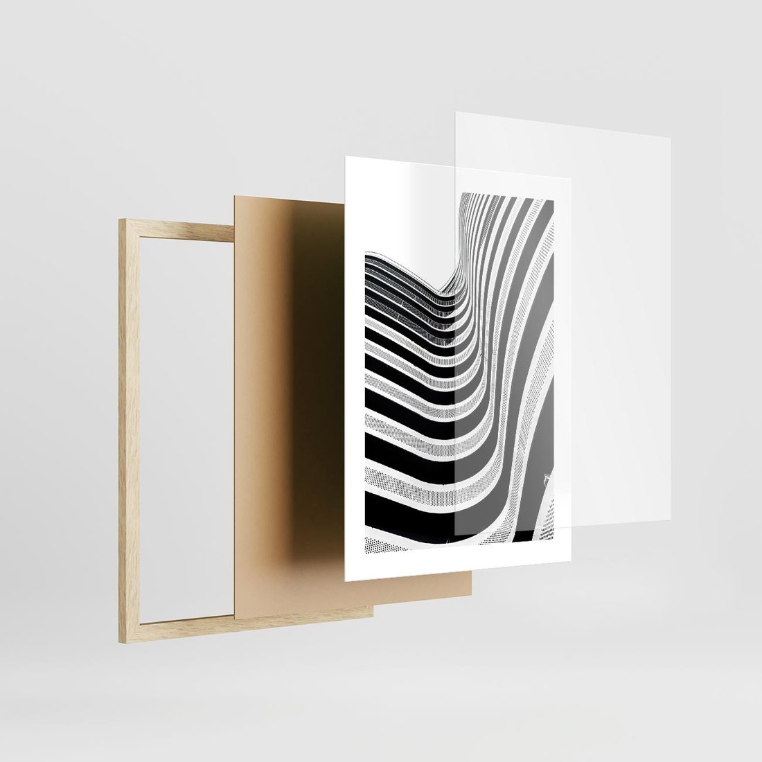 Plakat w ramie 30x40 - Nowoczesność w Monochromii - nowoczesna architektura, czarno białe zdjęcie - rama drewno
