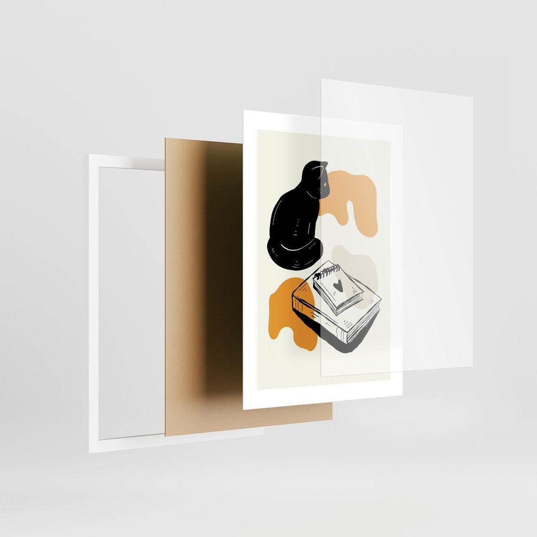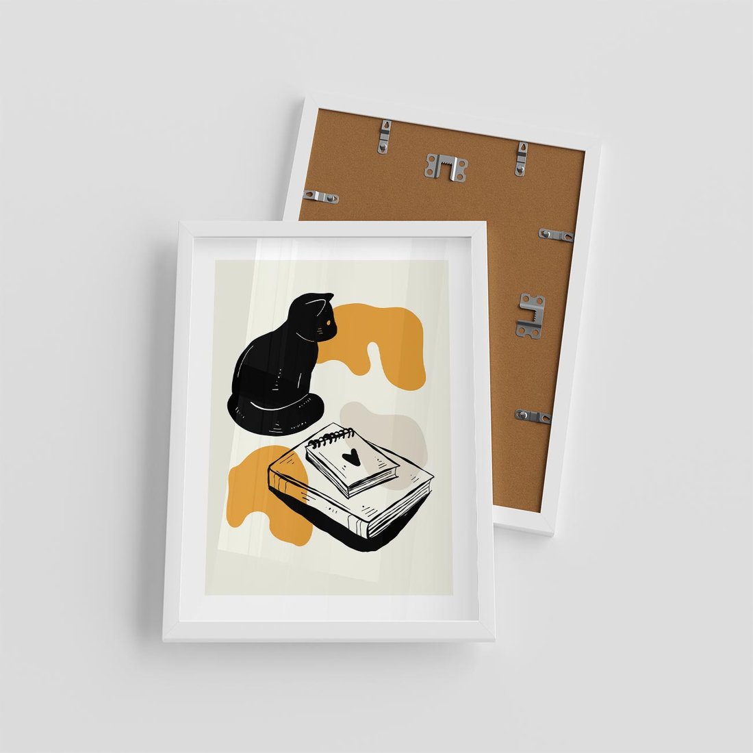 Nowoczesny plakat przedstawia grafikę kota w minimalistycznym stylu, tworząc elegancką i stylową kompozycję.