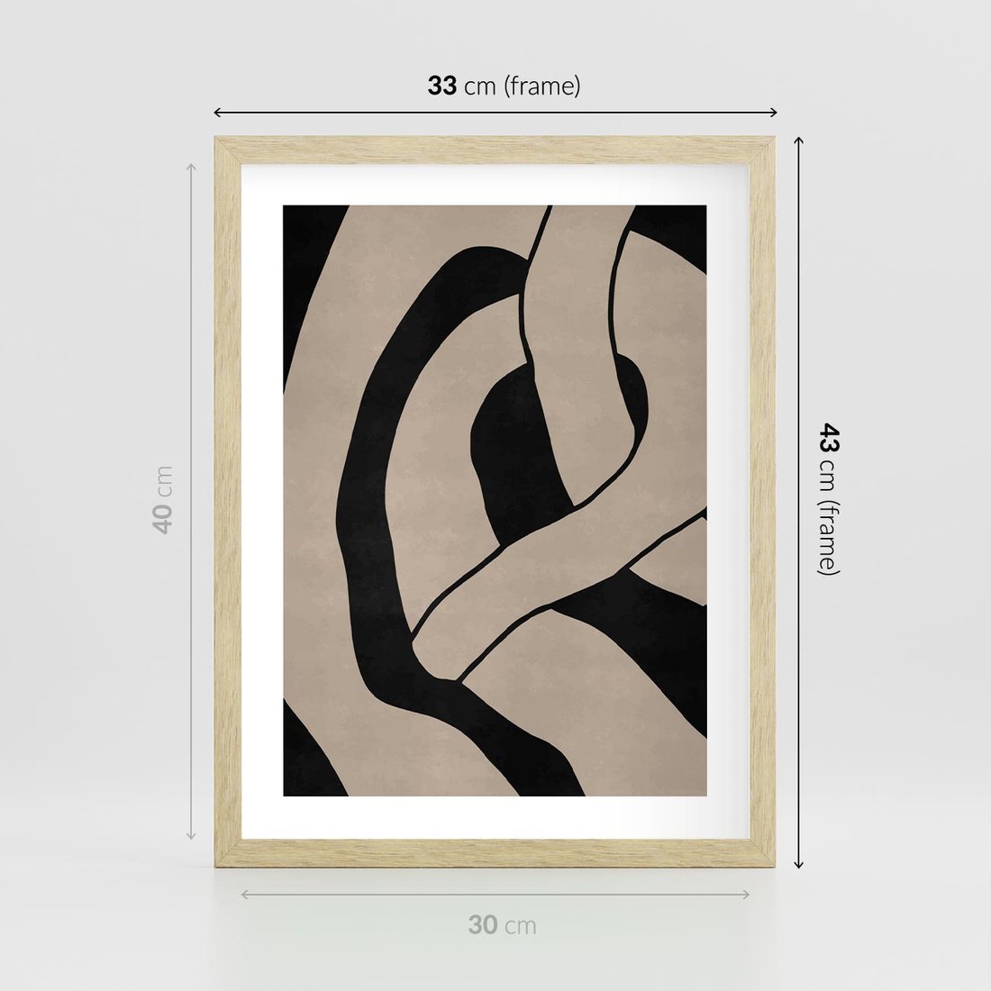 Plakat w ramie 30x40 - Obce Wariacje - abstrakcyjne linie, mroczny plakat - rama drewno