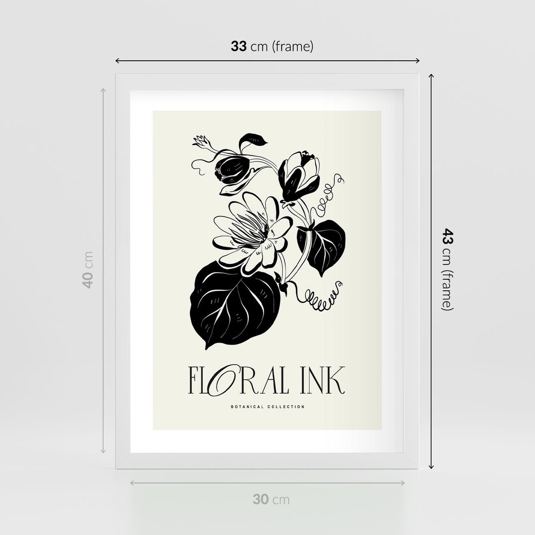 Plakat w ramie 30x40 - Odbicie kwiatowych chwil - kwiaty, typografia - rama biała