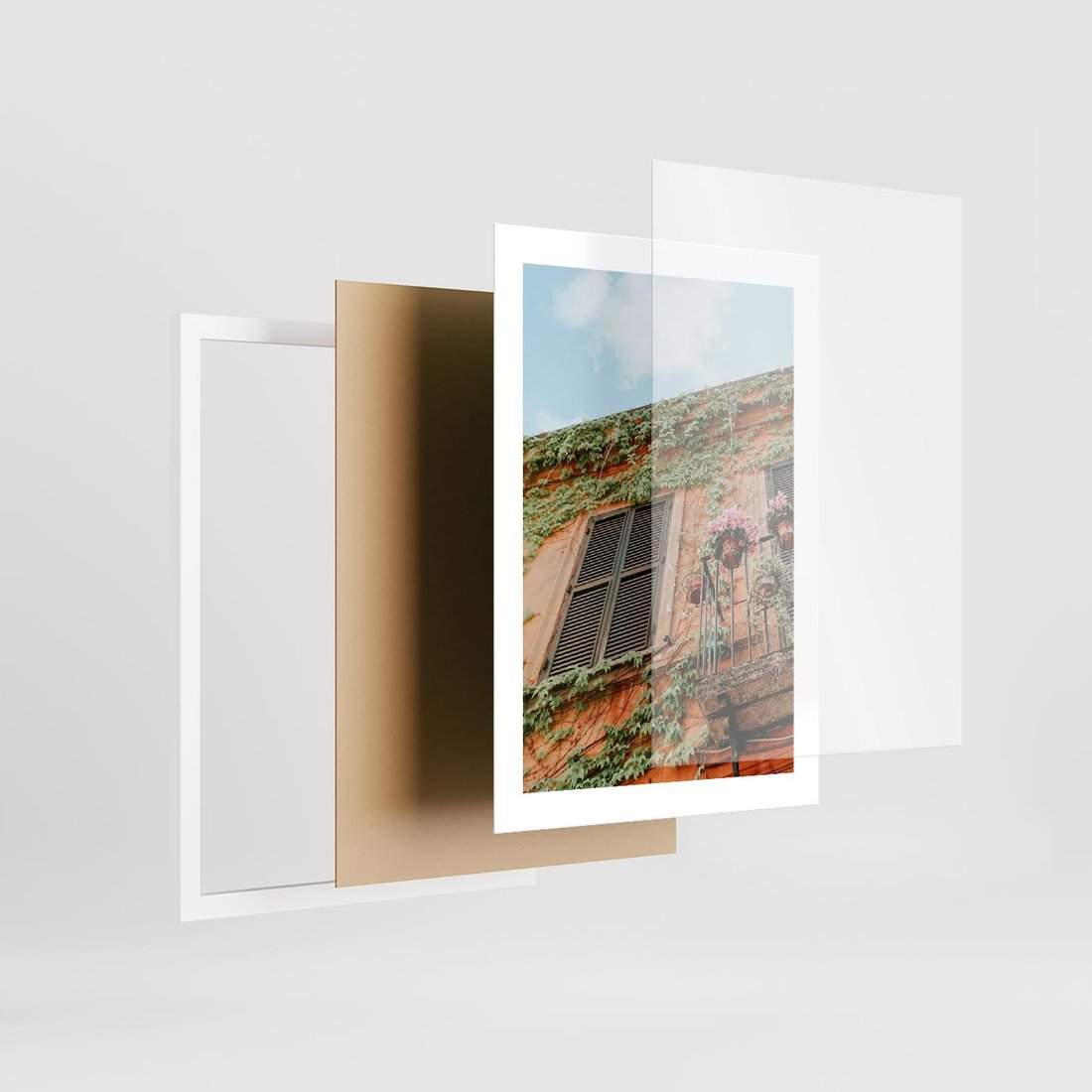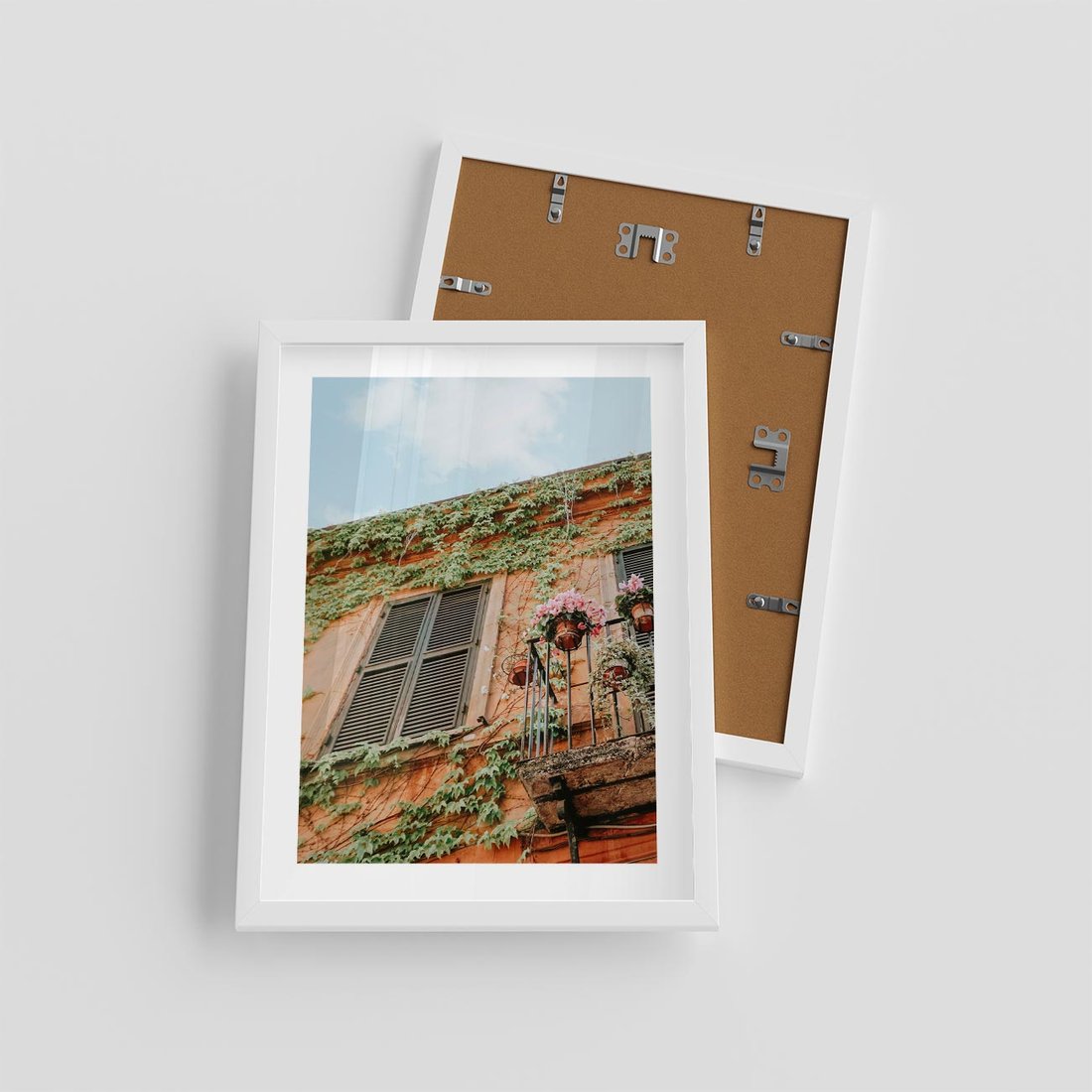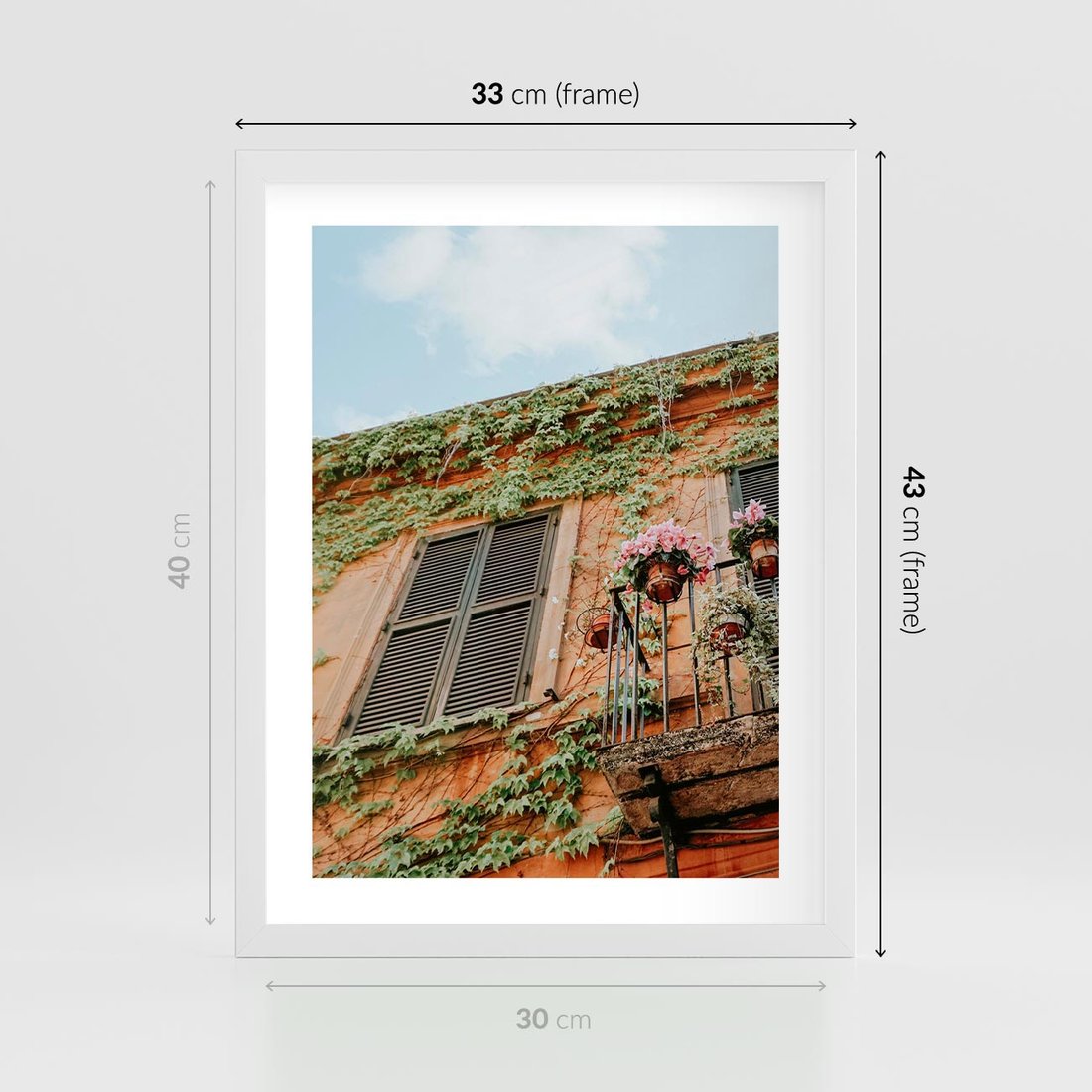 Plakat w ramie 30x40 - Okno do włoskich budynków - włoskie, budynki - rama biała