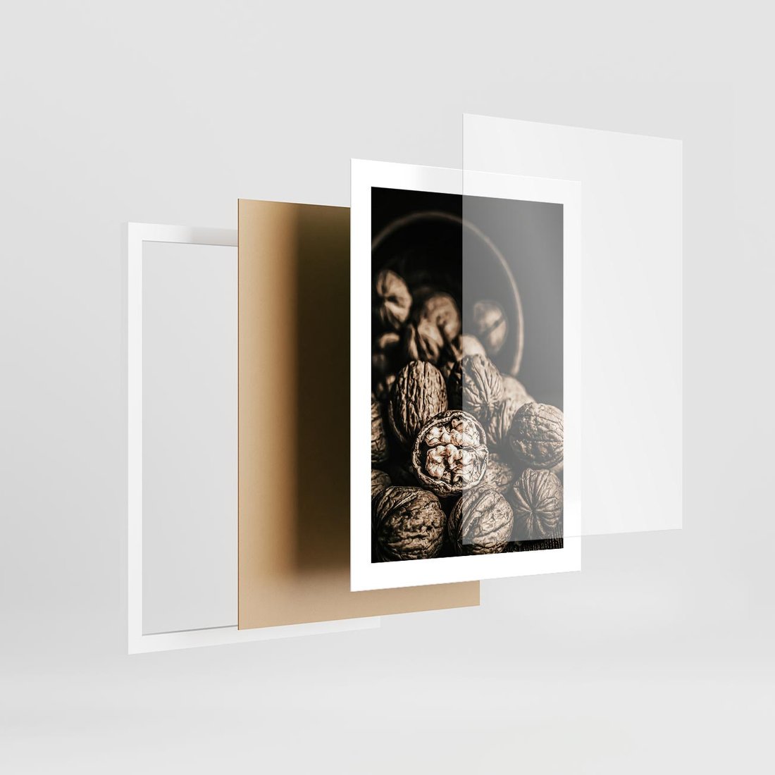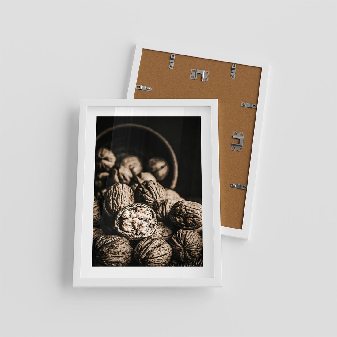 Plakat w ramie 30x40 - Orzechy Włoskie w Sepii - orzechy włoskie, fotografia retro - rama biała