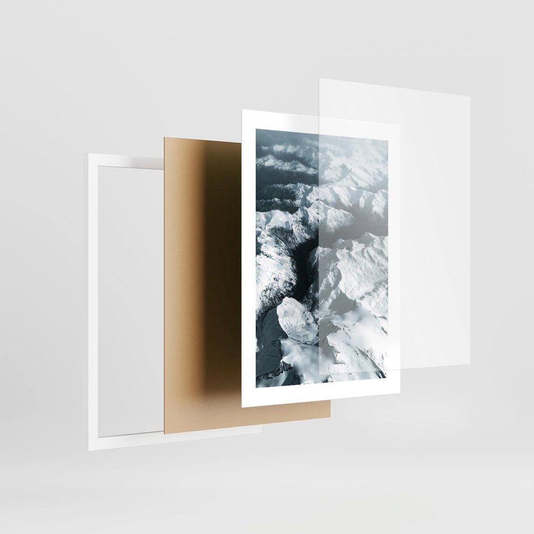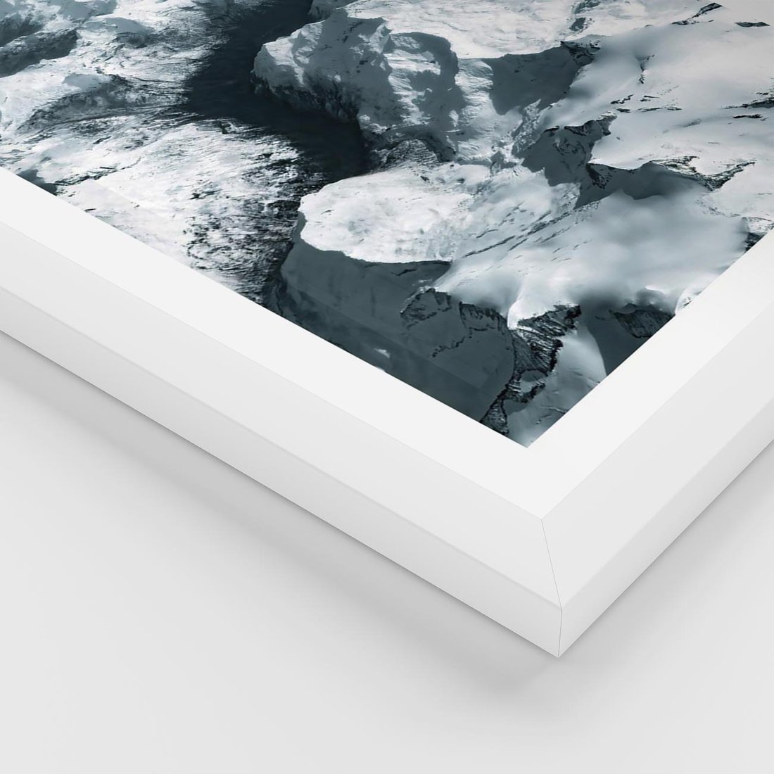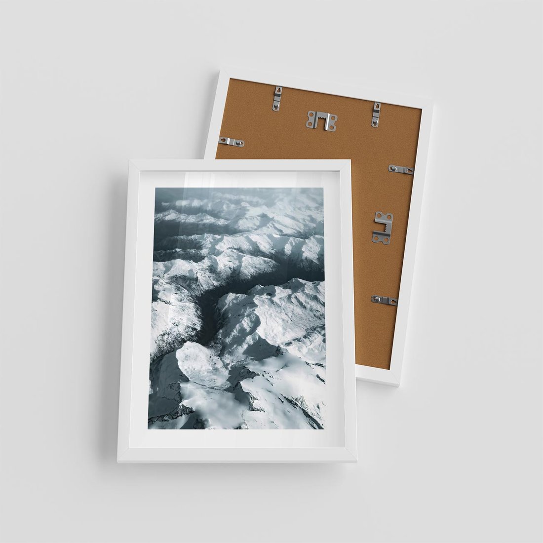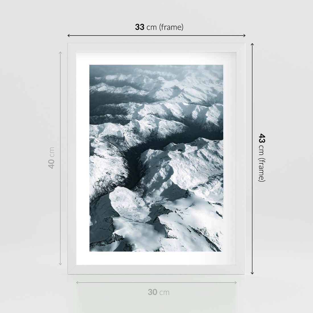 Plakat w ramie 30x40 - Ośnieżone Szczyty z Wysoka - ośnieżone szczyt górskie, zdjęcie z lotu ptaka - rama biała