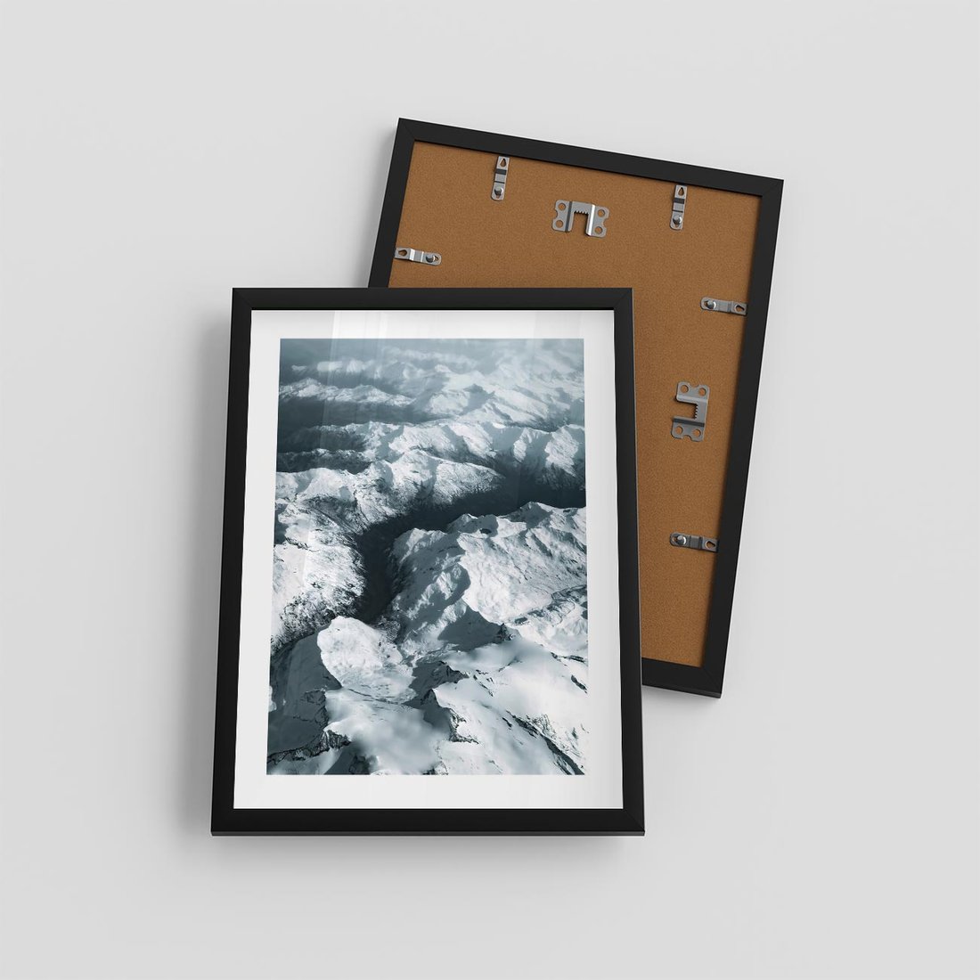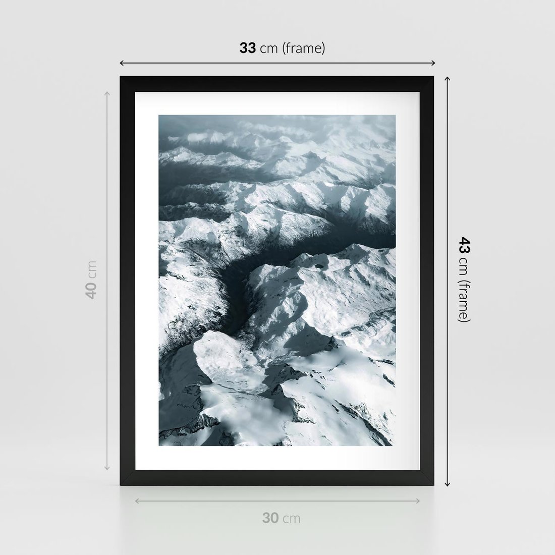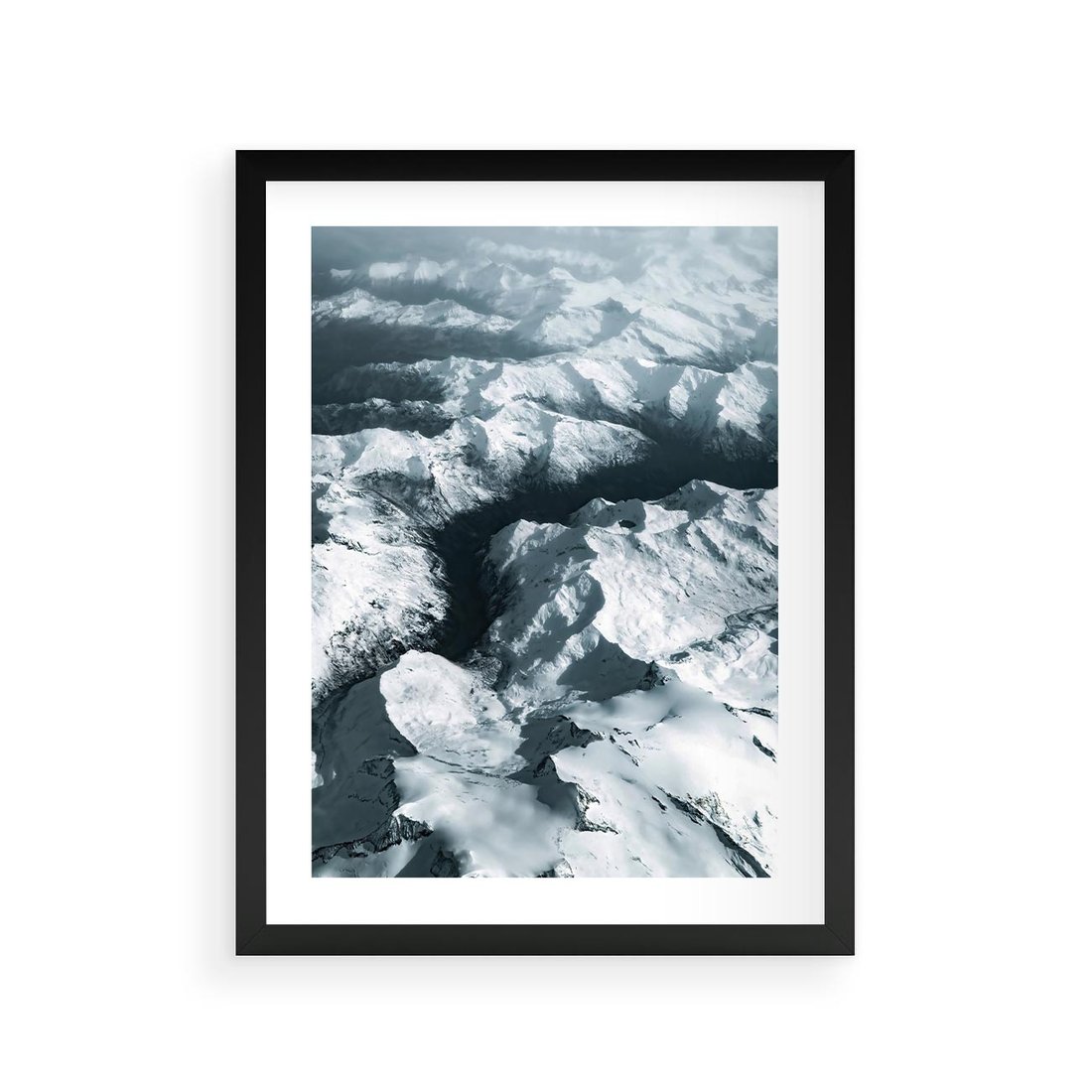 Plakat w ramie 30x40 - Ośnieżone Szczyty z Wysoka - ośnieżone szczyt górskie, zdjęcie z lotu ptaka - rama czarna