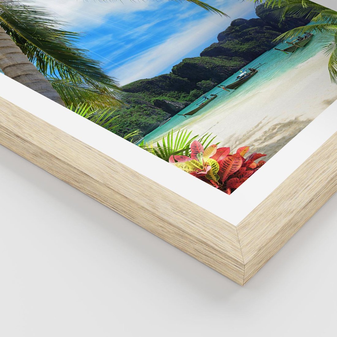 Plakat w ramie 30x40 - Palmy tańczące na tropikalnej plaży - palmy, plaża - rama drewno
