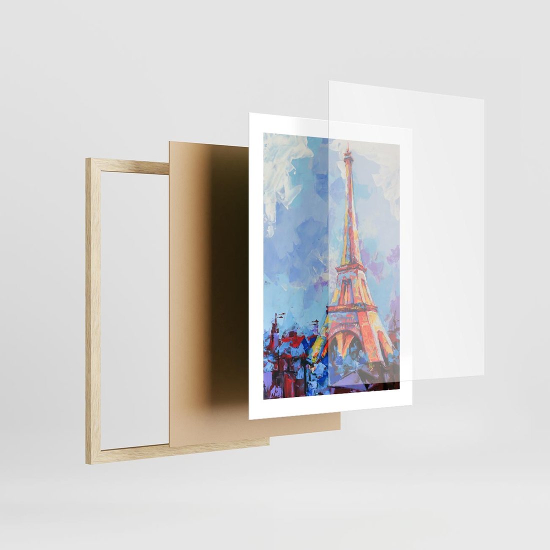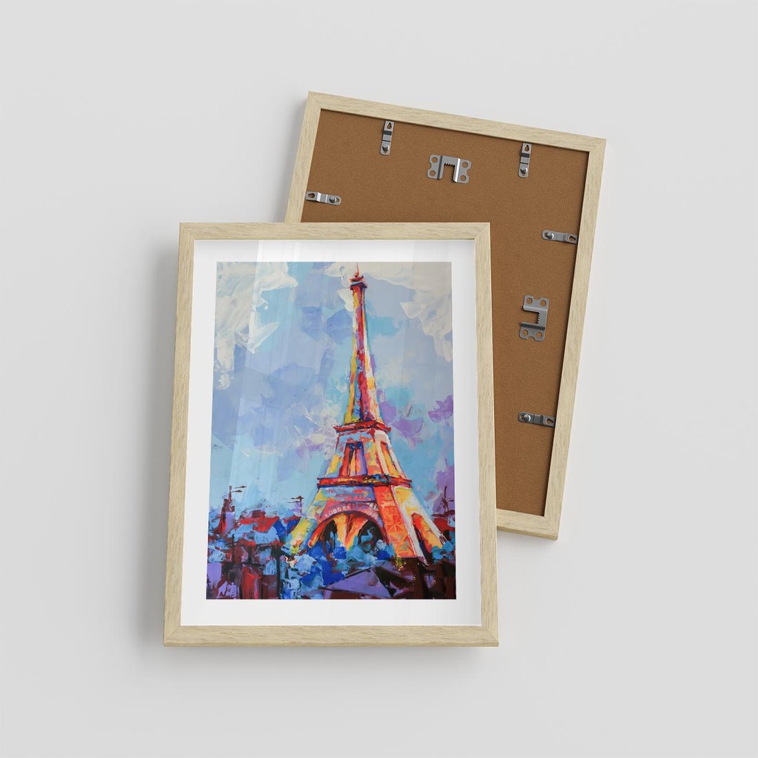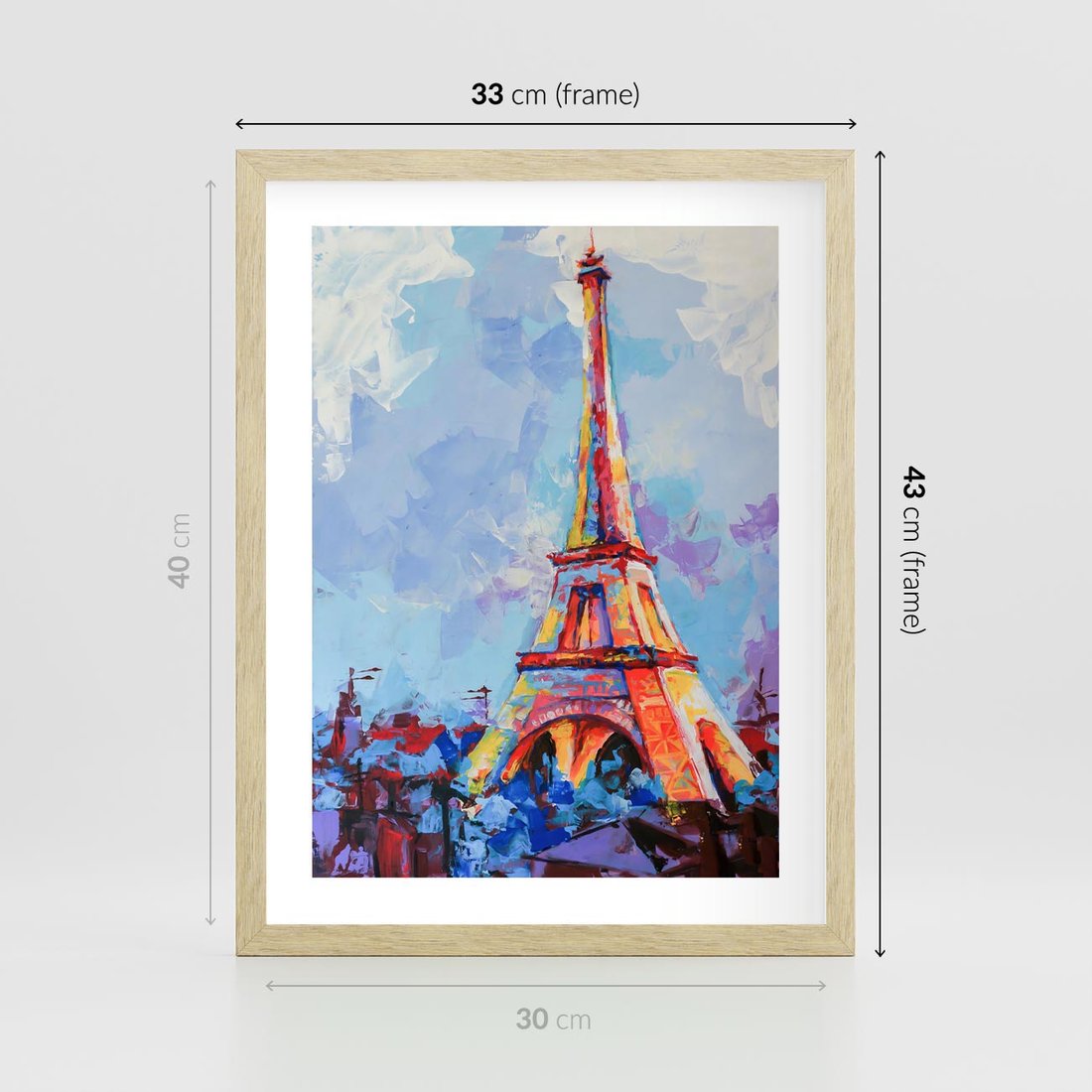 Plakat w ramie 30x40 - Paryska Wieża - olejny abstrakcyjny obraz, wieża eiffla - rama drewno