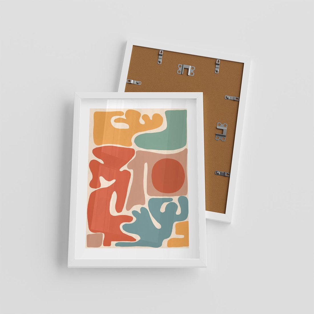 Plakat w ramie 30x40 - Pastelowa Symfonia Kształtów - abstrakcyjne kolorowe formy, pastelowe kolory - rama biała