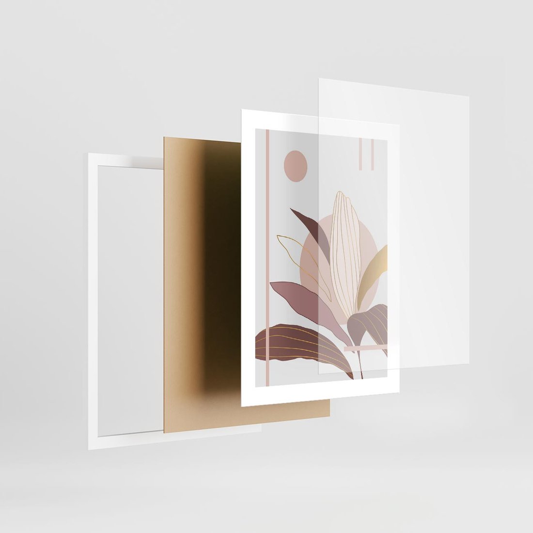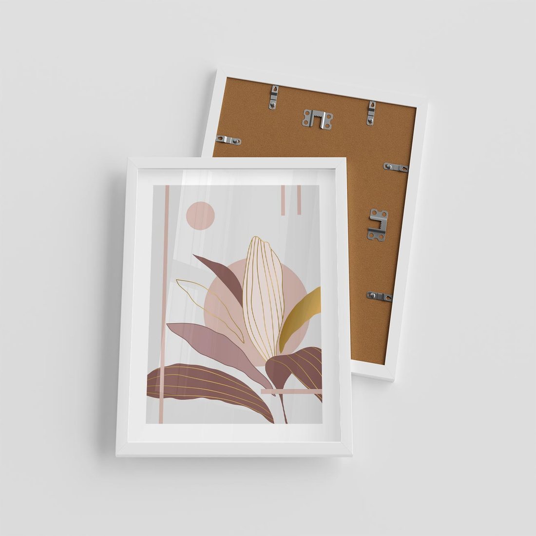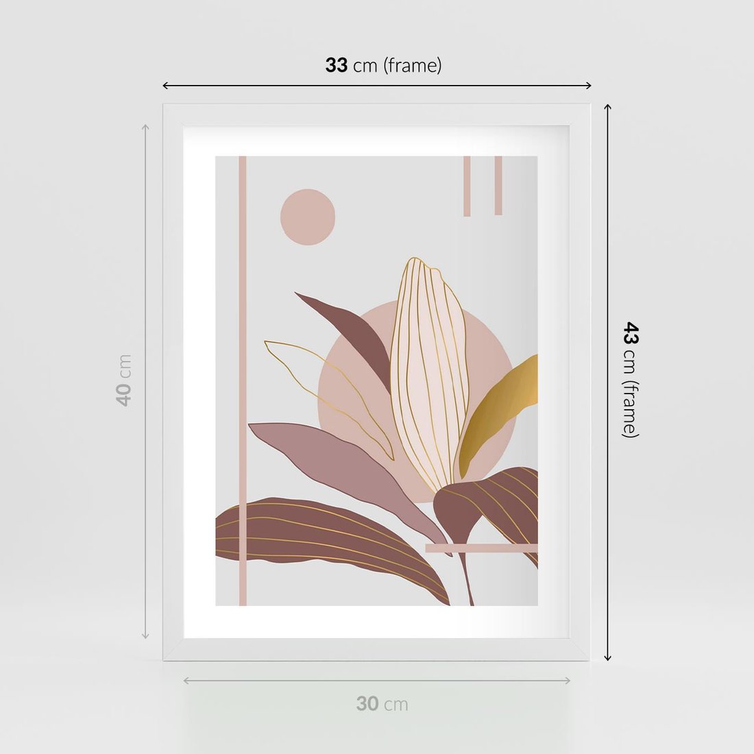 - Plakat w ramie 30x40 - Pastelowa Uroda Natury: Kwiat z Złotymi Akcentami