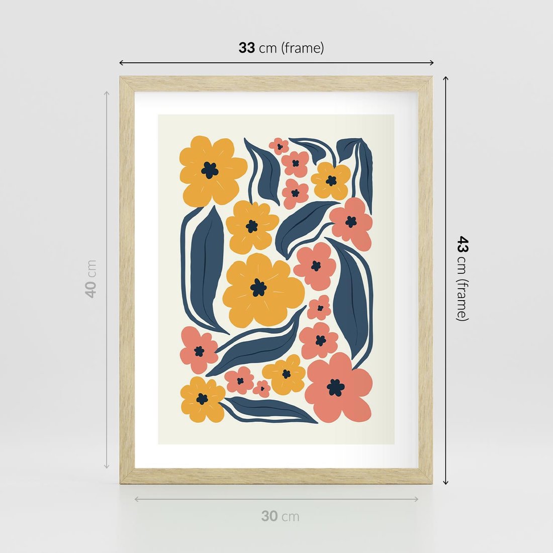 Plakat w ramie 30x40 - Pastelowe Impresje - pastelowe kwiaty, abstrakcyjna kompozycja - rama drewno