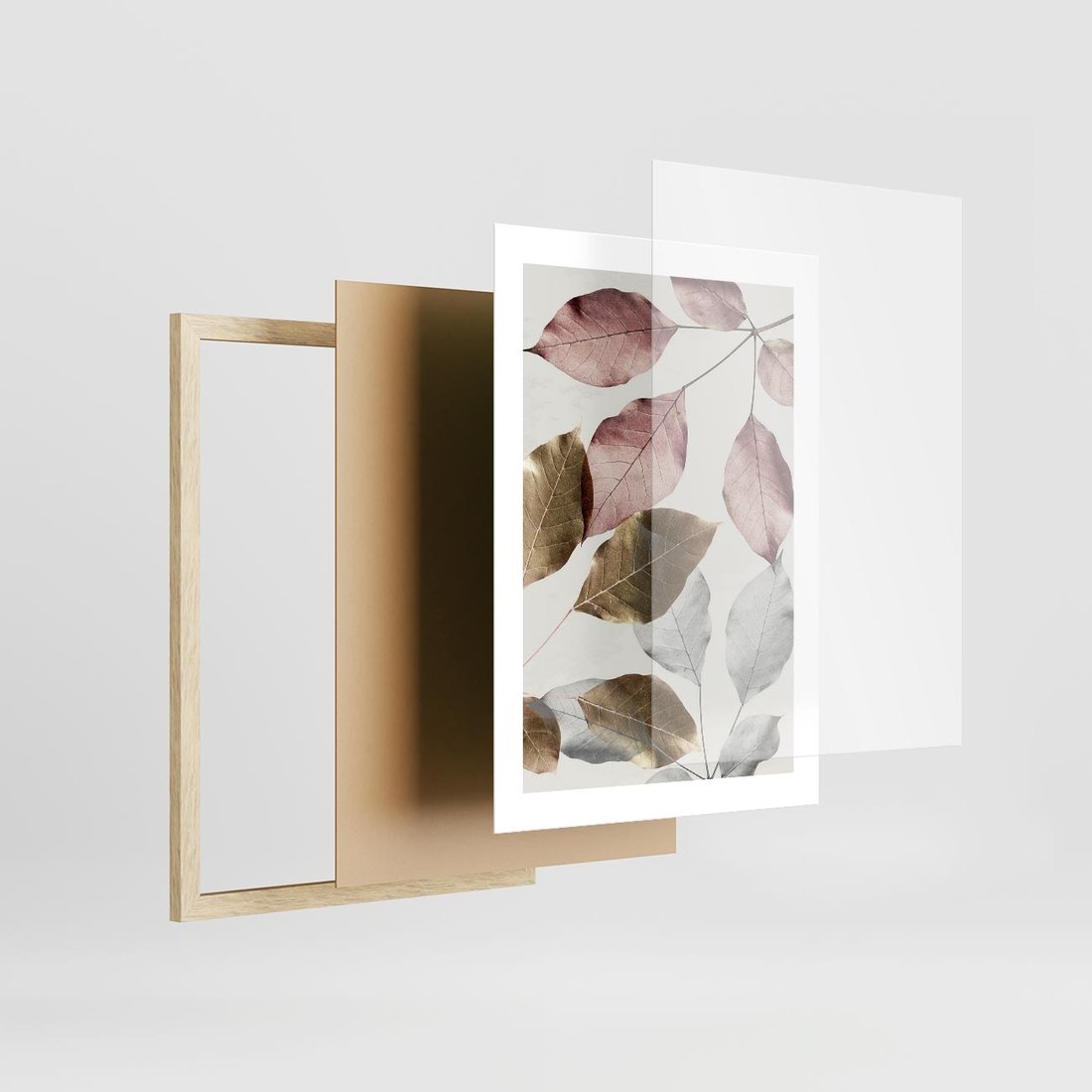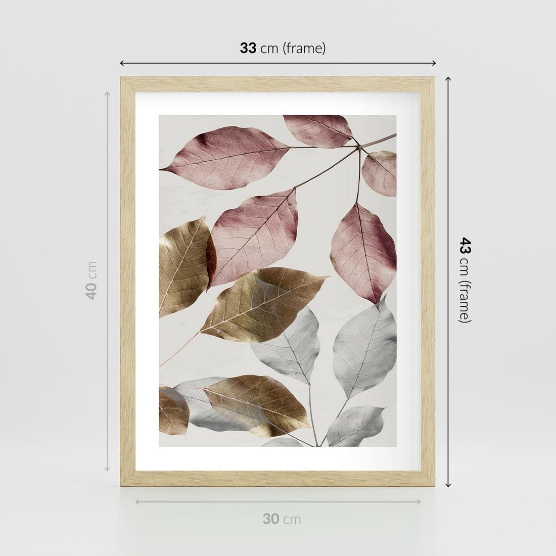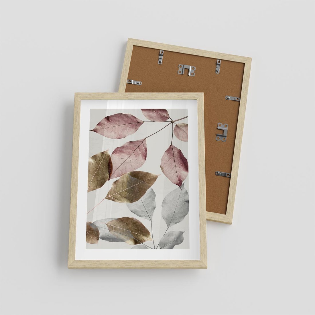 - Plakat w ramie 30x40 - Pastelowe Liście z Nutką Złota