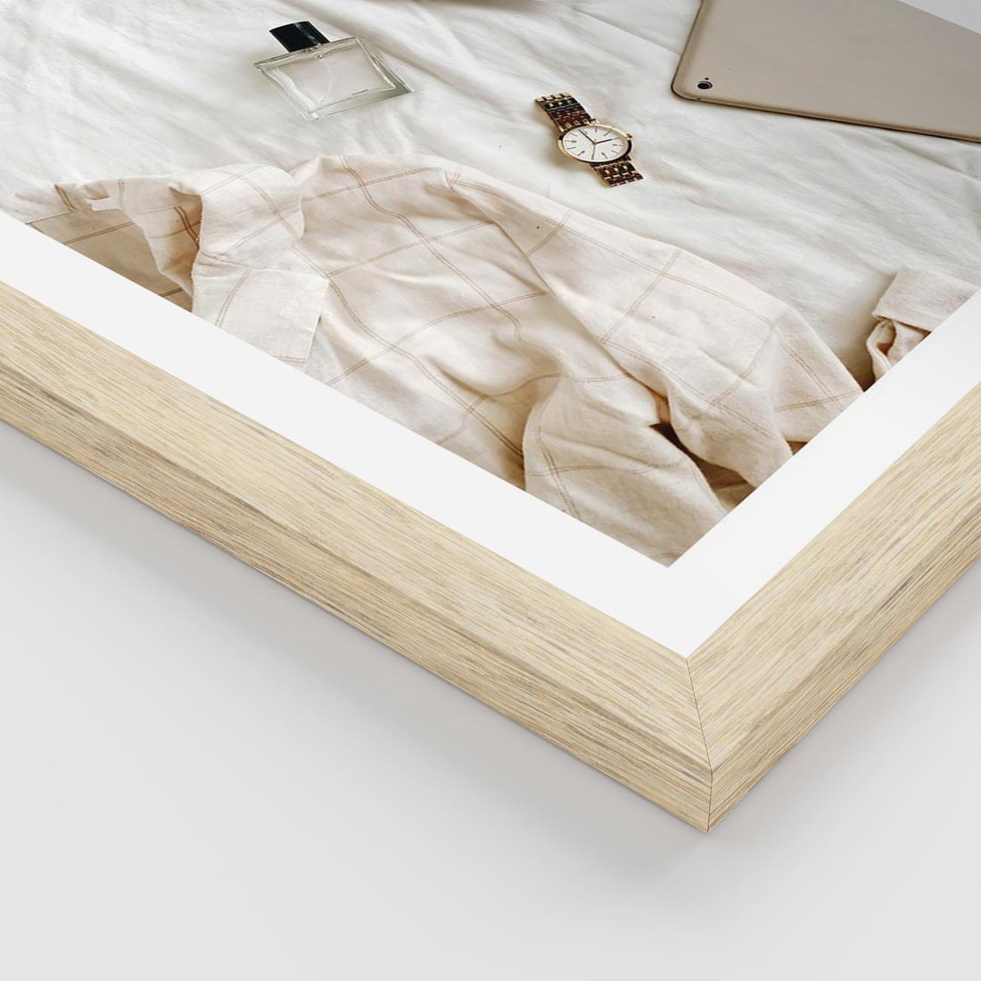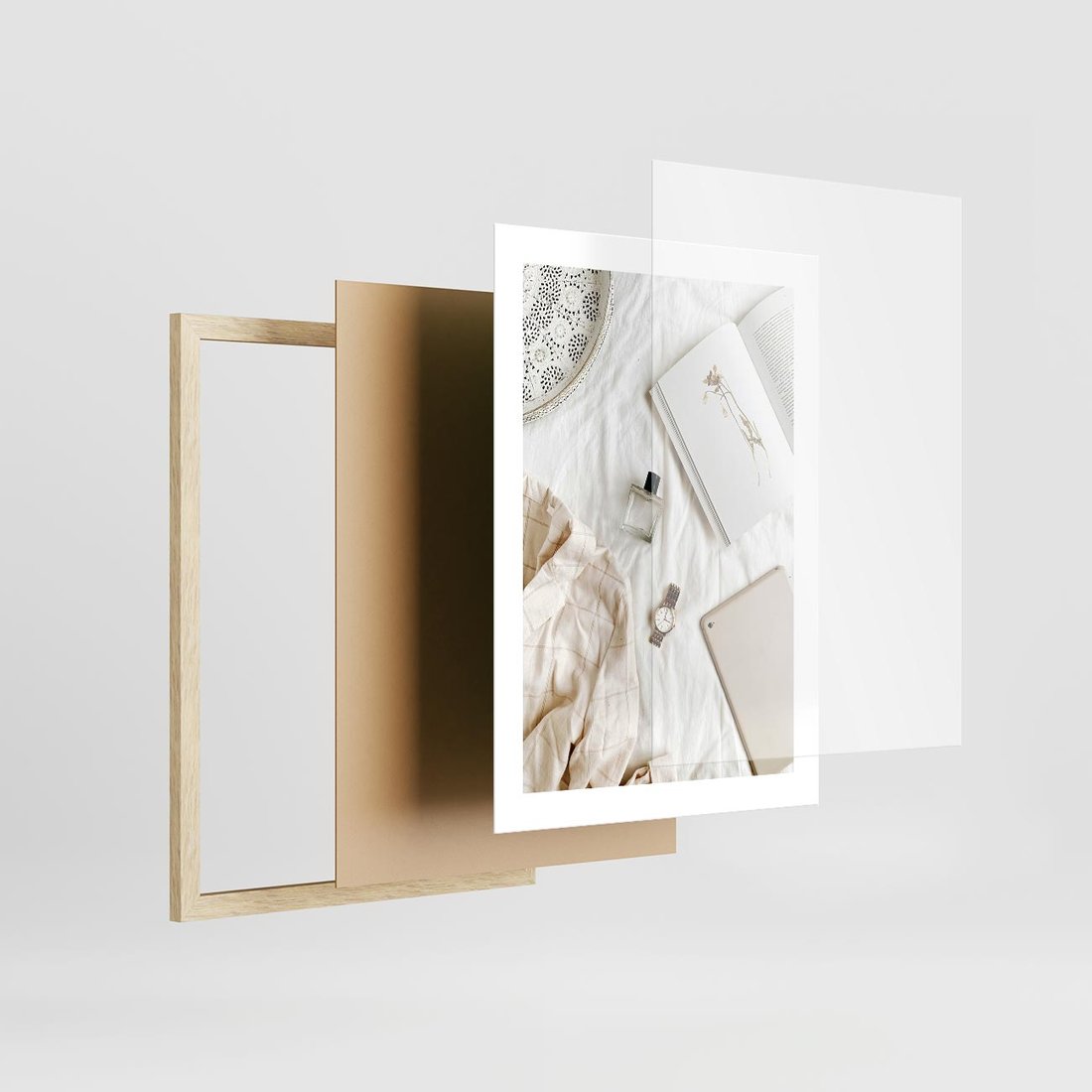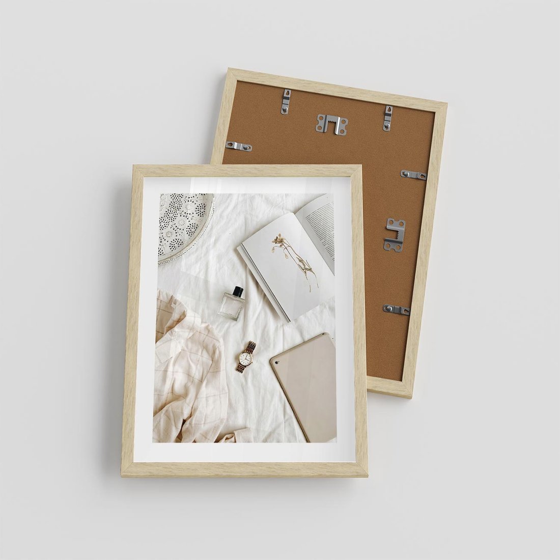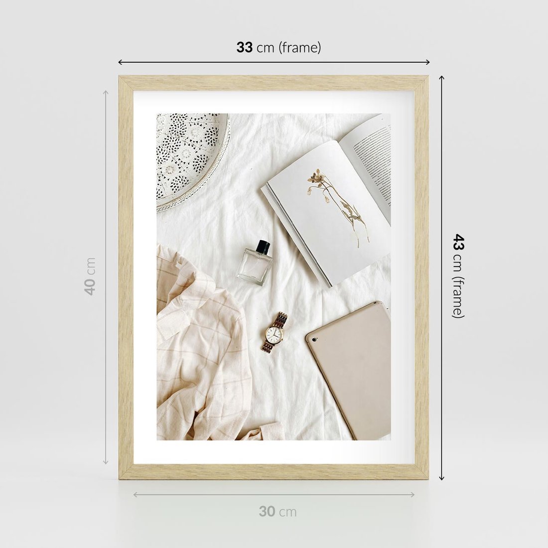 Plakat w ramie 30x40 - Perfumy, Książka i Moda - kobieca kompozycja, perfumy - rama drewno