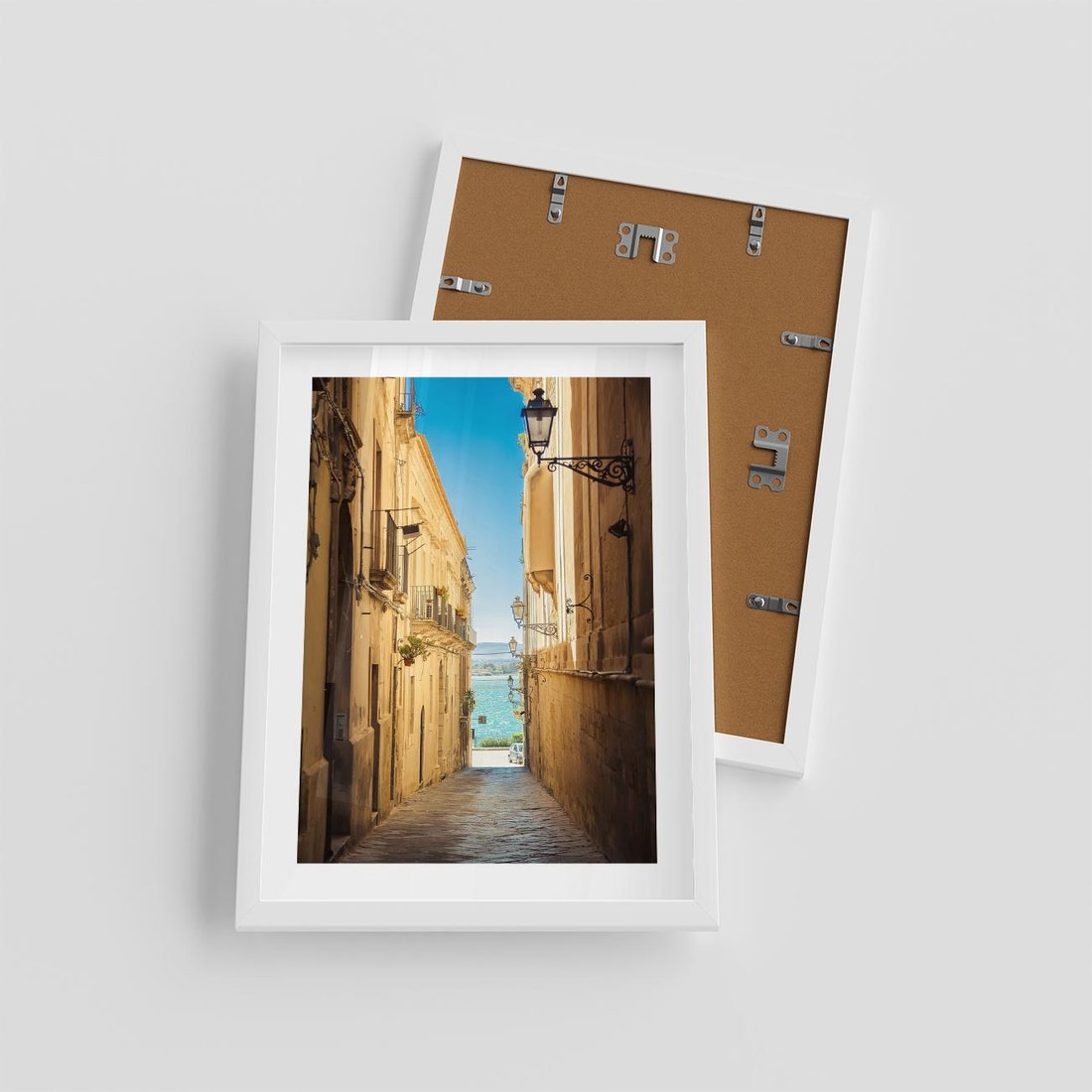 Plakat w ramie 30x40 - Perspektywa magicznej uliczki - uliczka, perspektywa - rama biała